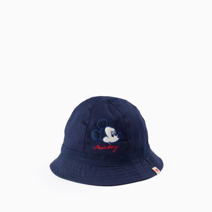 Bonnet en Sergé avec Sangles Latérales pour Bébé Garçon ‘Mickey’, Bleu Foncé