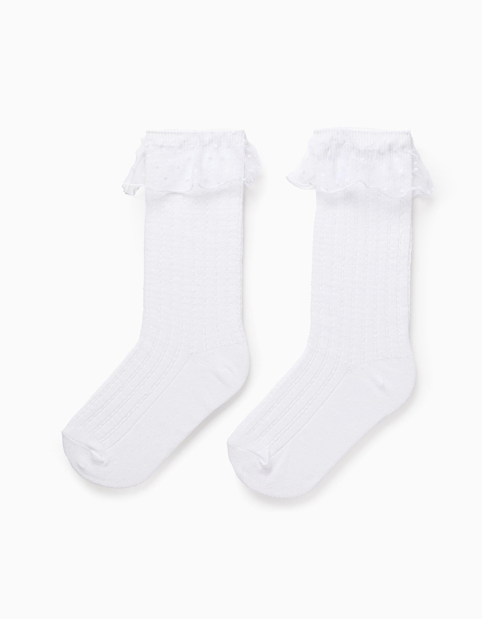 CHAUSSETTES HAUTE TULLE, BLANC, 23/26