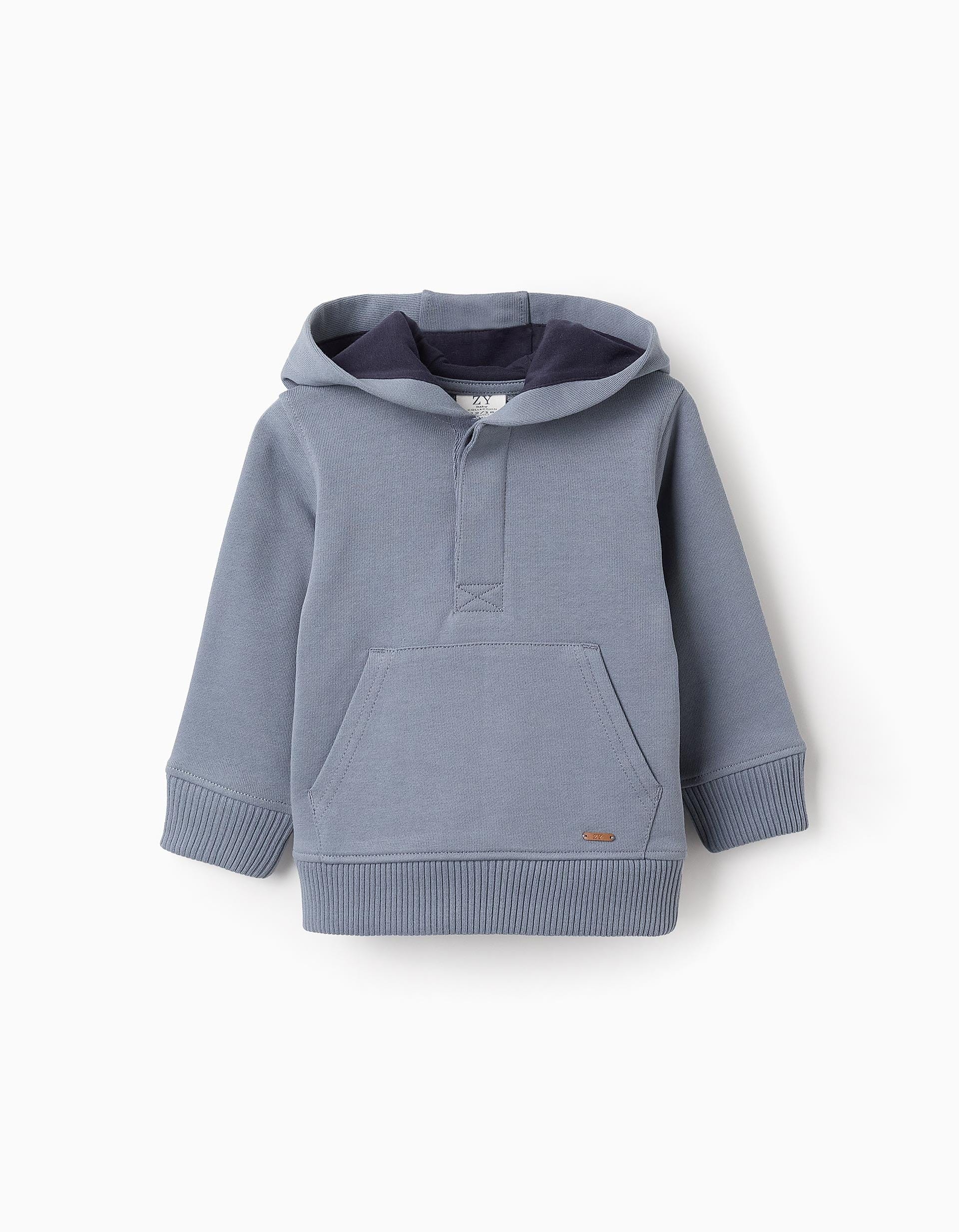 SWEAT POLAIRE COTON, BLEU, 6/9M
