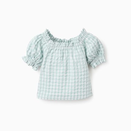 Top en Vichy avec Texture Fille ‘B&S’, Vert Aqua/Blanc