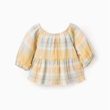 Top Fille à Carreaux et Manches Bouffantes ‘B&S’, Jaune
