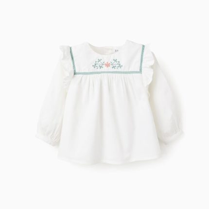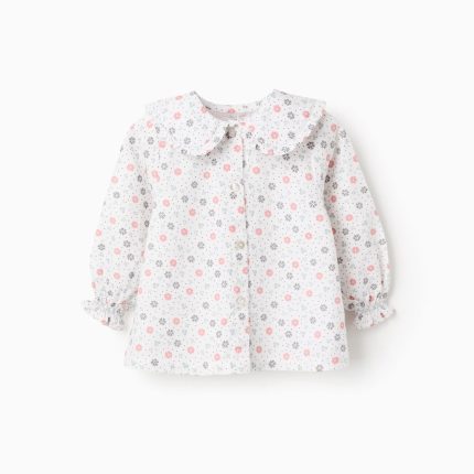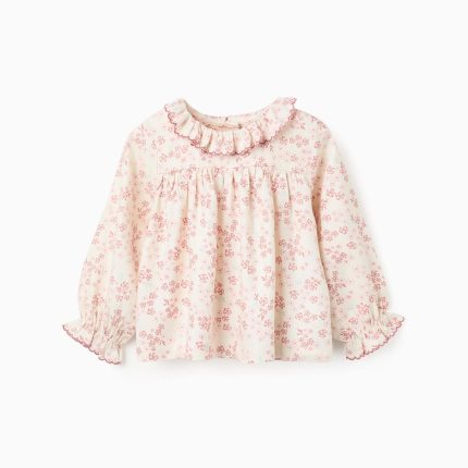 Blouse fleurie à manches longues et volants pour bébé fille, beige clair/rose