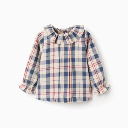 Blouse en coton à carreaux bébé fille, corail/vert d’eau
