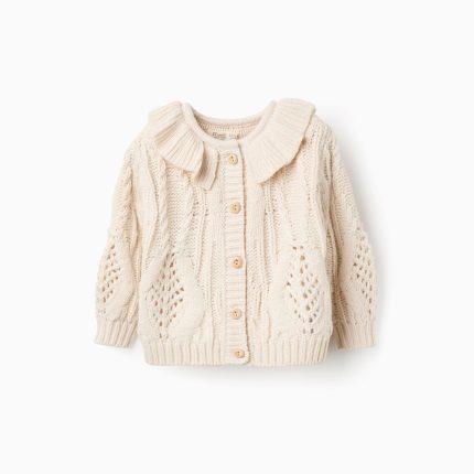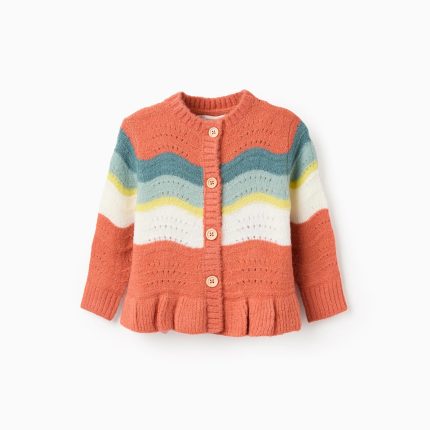 Cardigan en maille dentelle à volants et effets pour bébé fille, rose