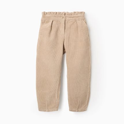 Pantalon en sergé à jambes larges et ourlets effilochés pour filles, beige