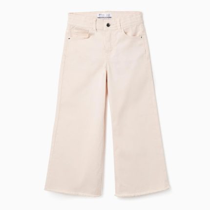 Pantalon en sergé à jambes larges et ourlets effilochés pour filles, rose clair