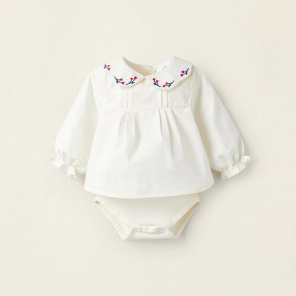 Body-Blouse avec broderie anglaise en coton fille nouveau-né Blanc