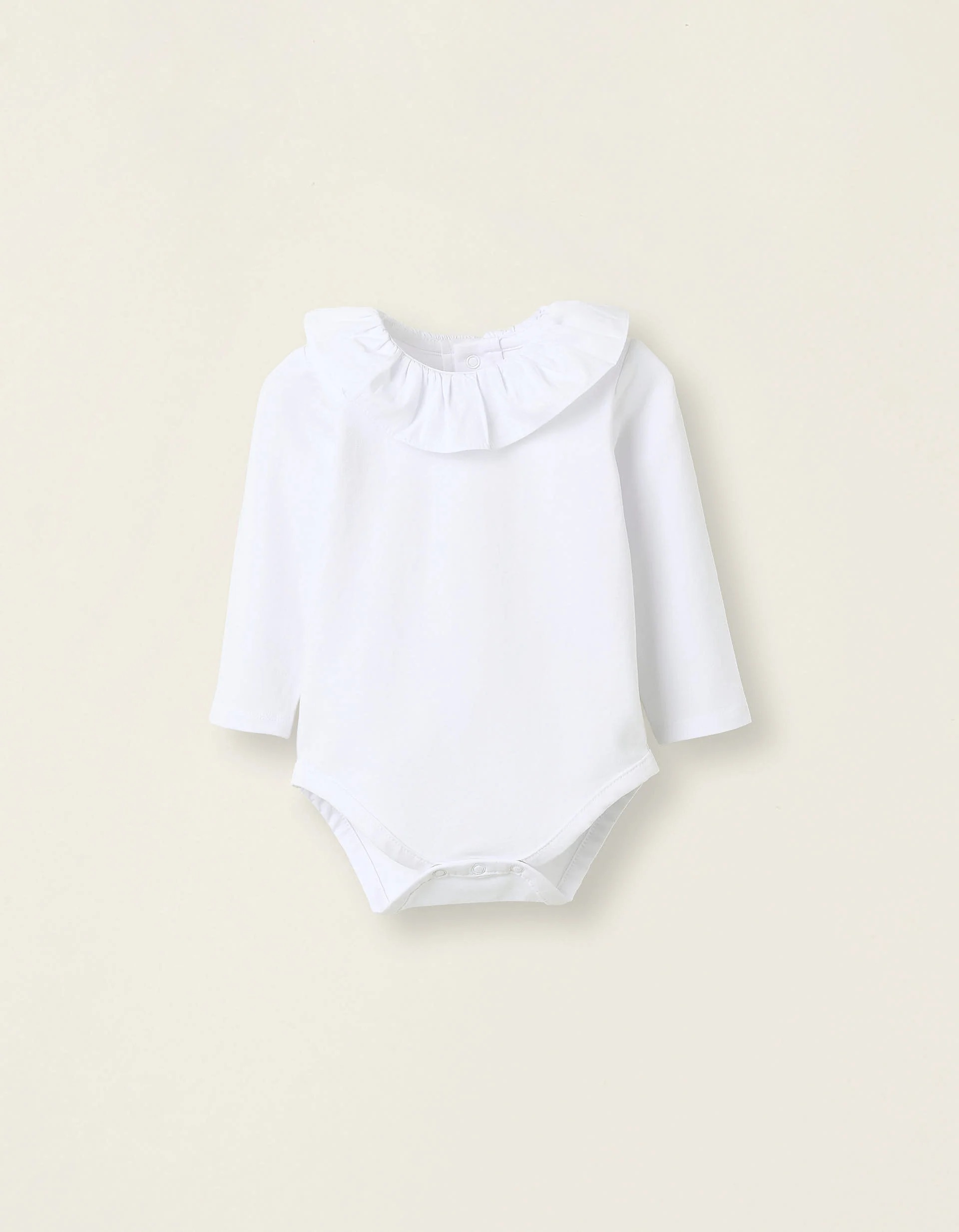 Body en coton avec col à volants pour nouveau-né fille, blanc