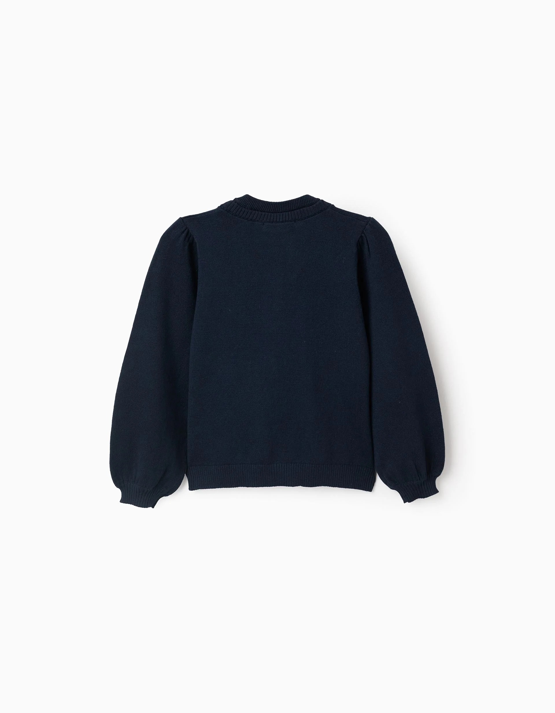 Cardigan en maille avec détails tressés pour fille, bleu foncé