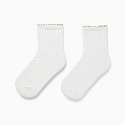 Chaussettes hautes côtelées à volants en tulle pour filles, blanches