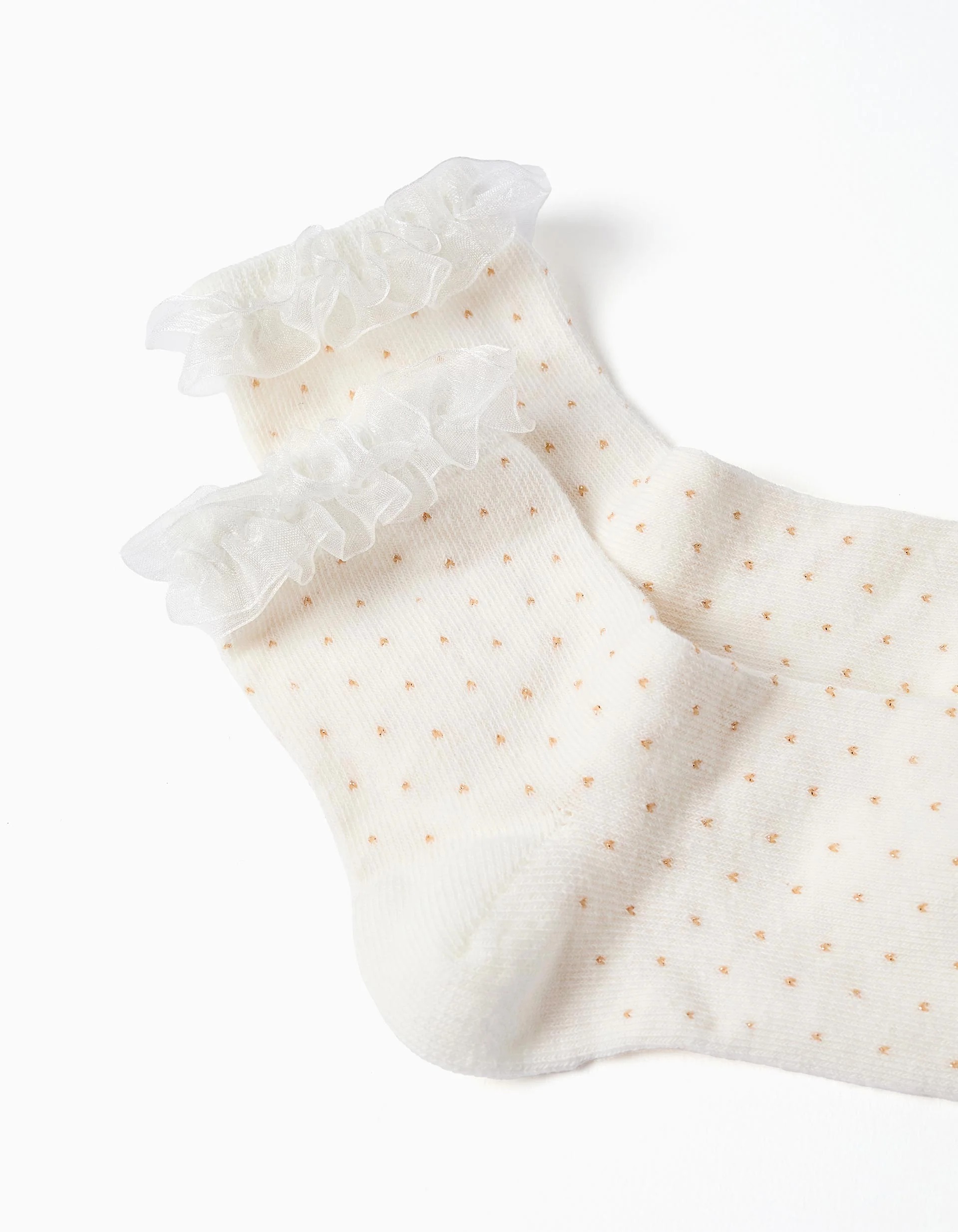 Chaussettes mi-mollet à pois et volants pour filles, blanches