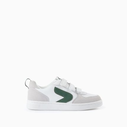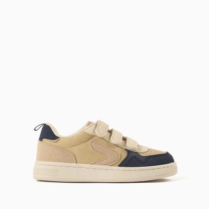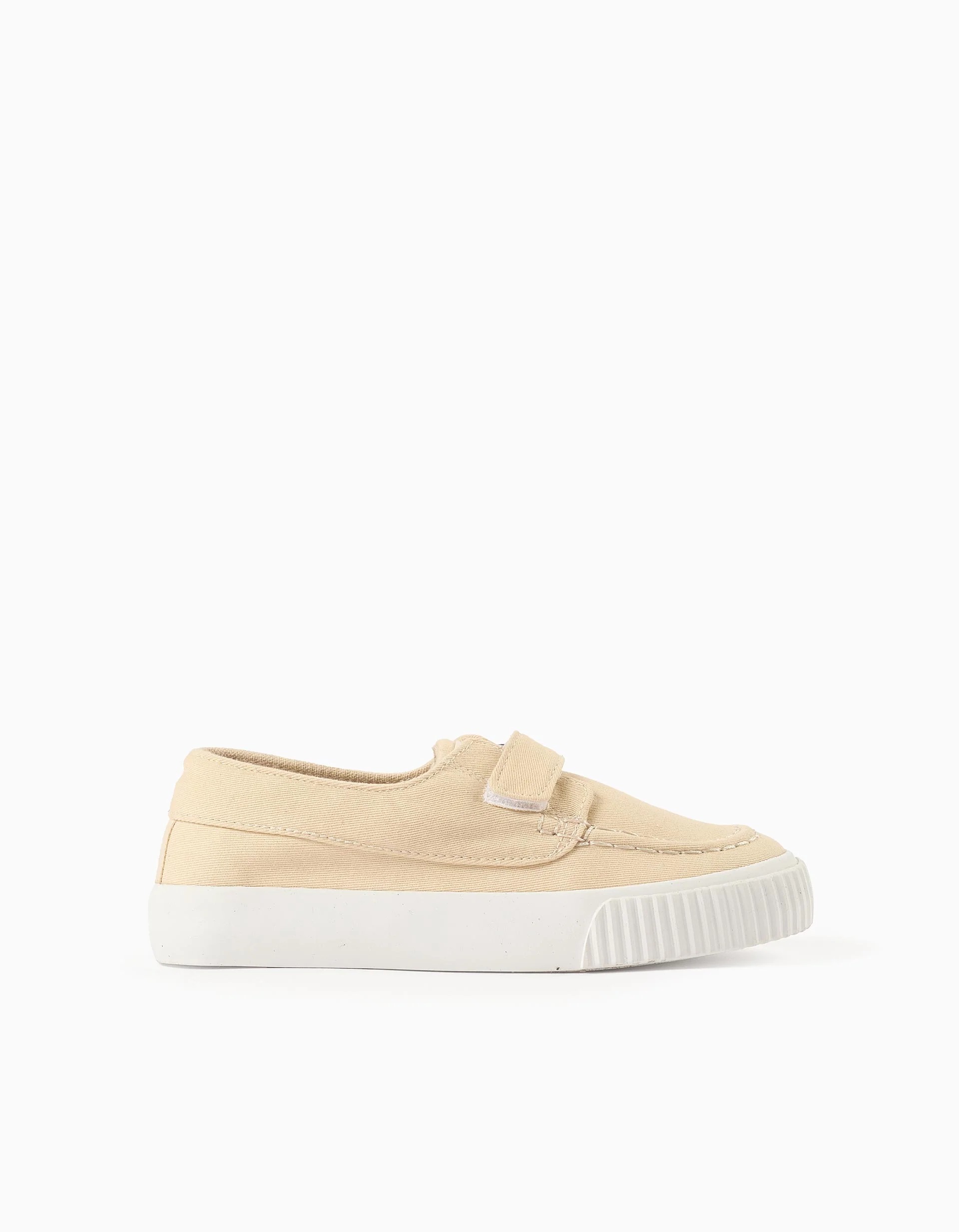 Chaussures bateau en toile à scratch pour garçon beige clair