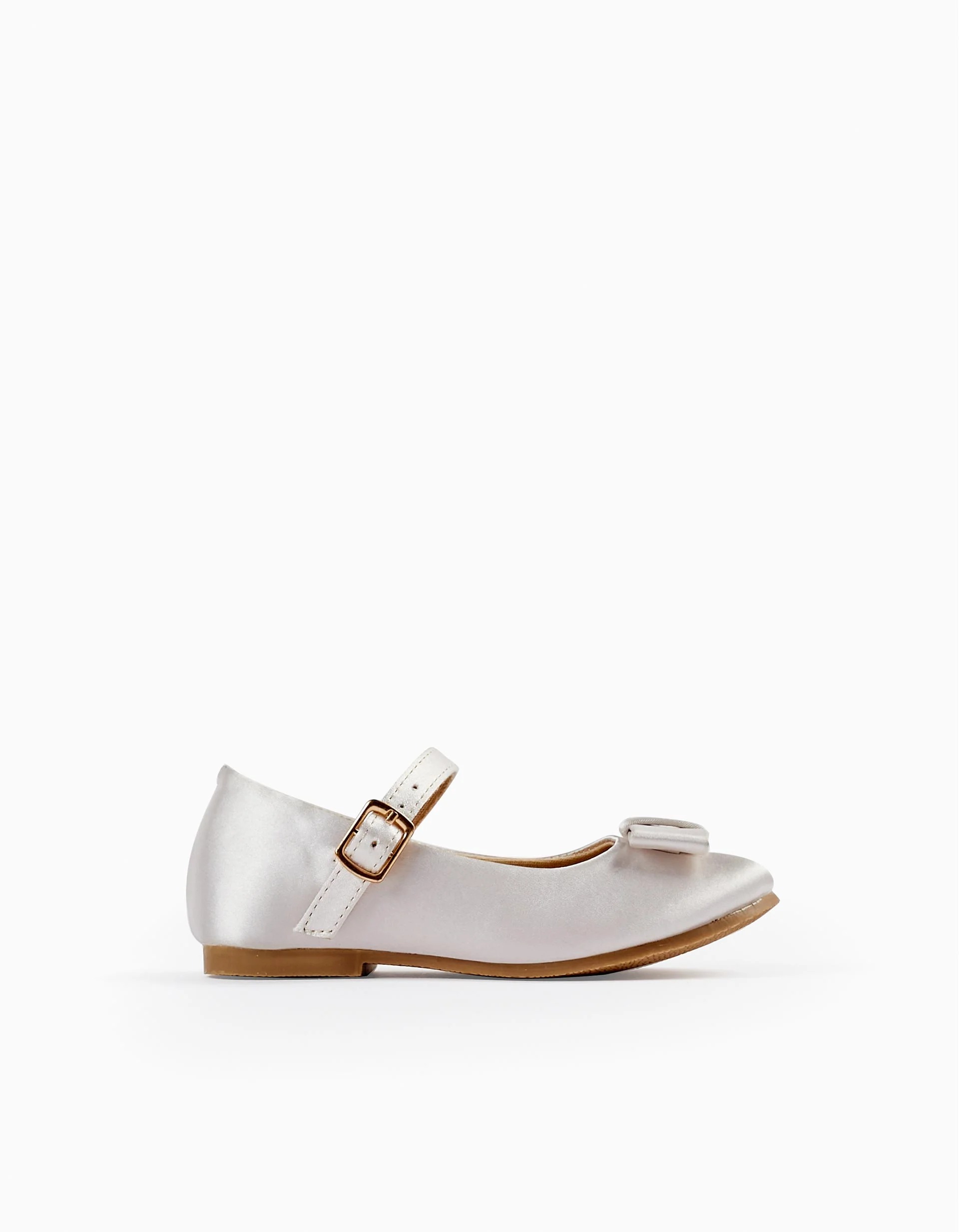 Chaussures de ballerine satinée avec arc pour les bébés filles, blanc