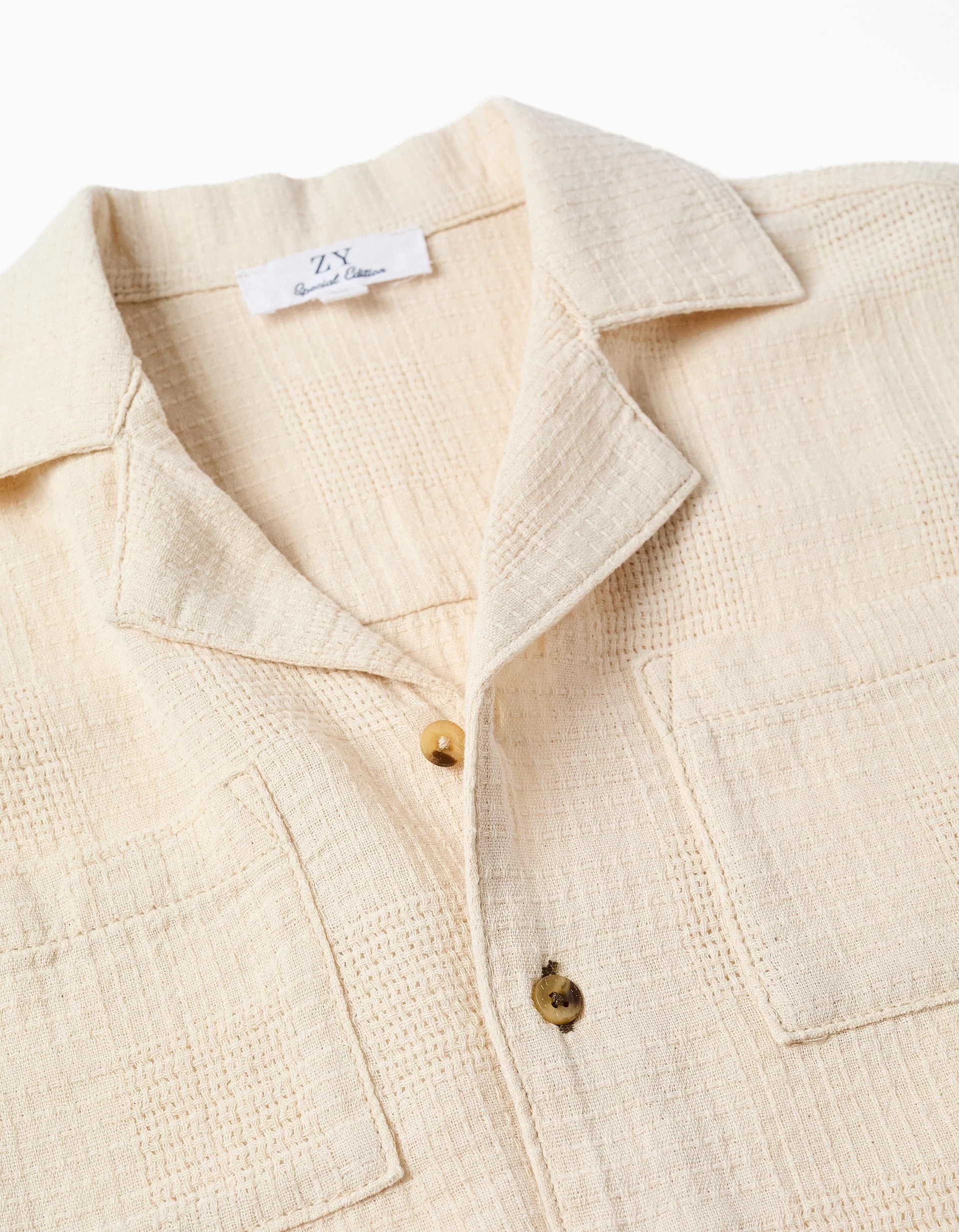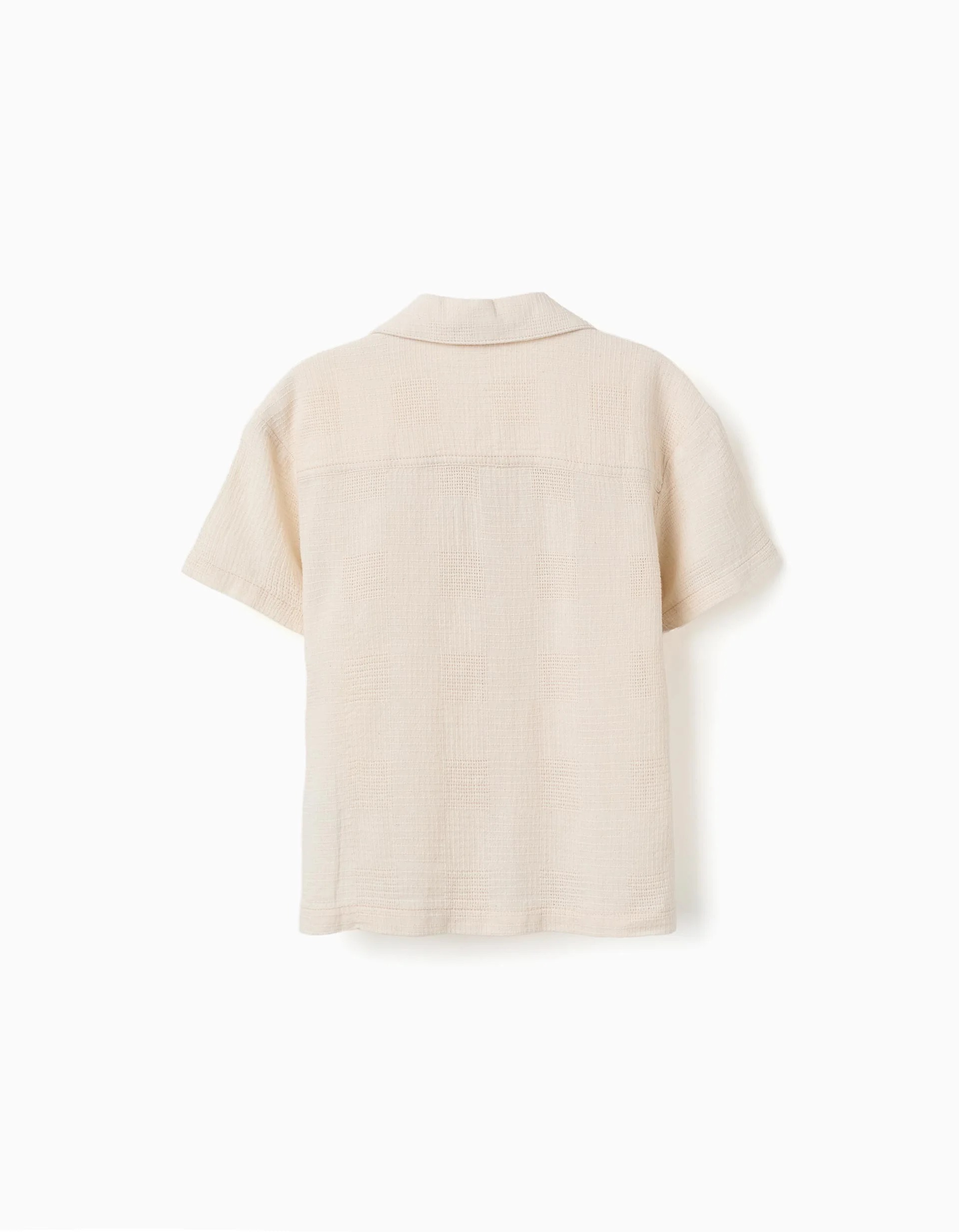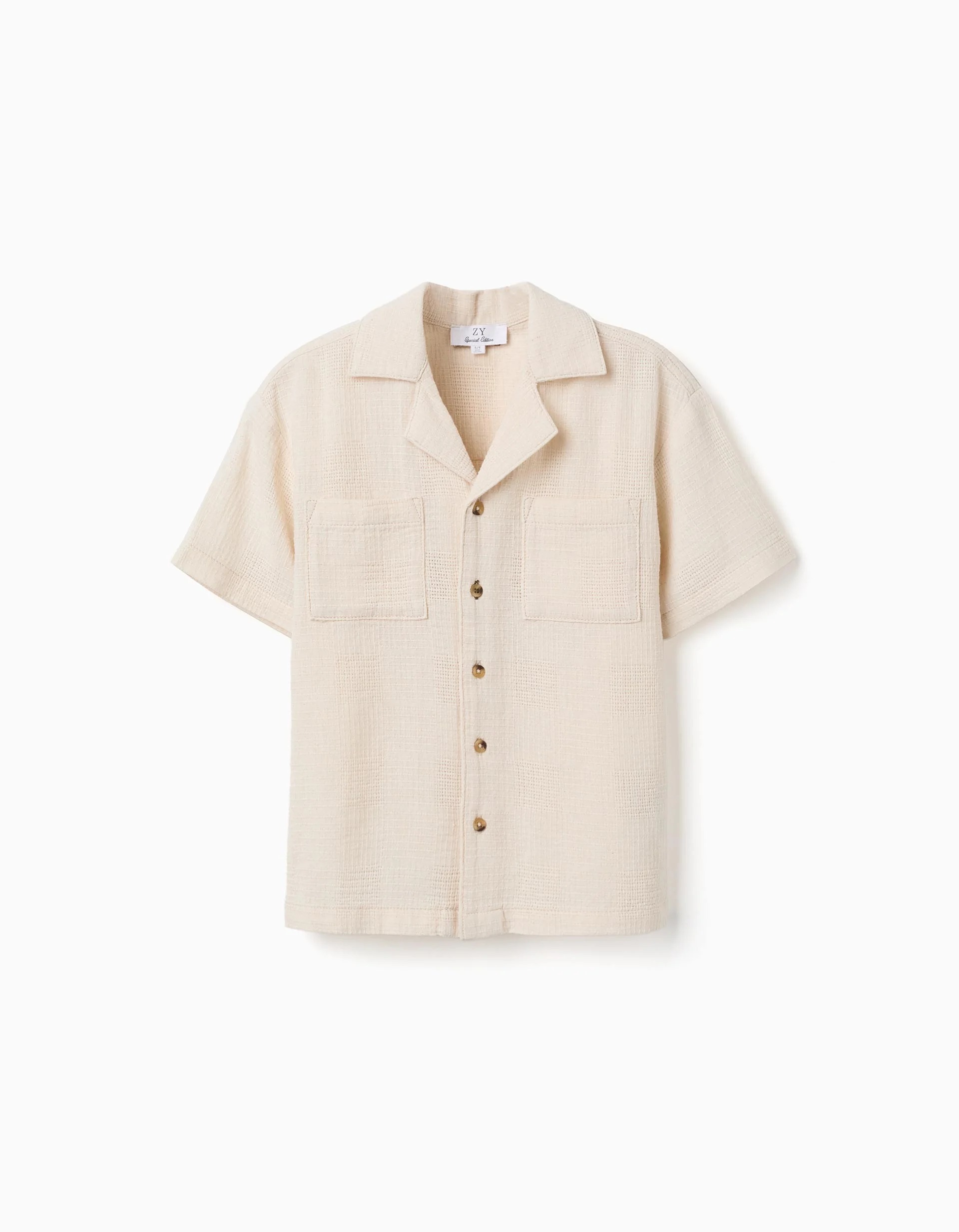 Chemise en coton à manches courtes avec poches poitrine pour garçons, beige clair