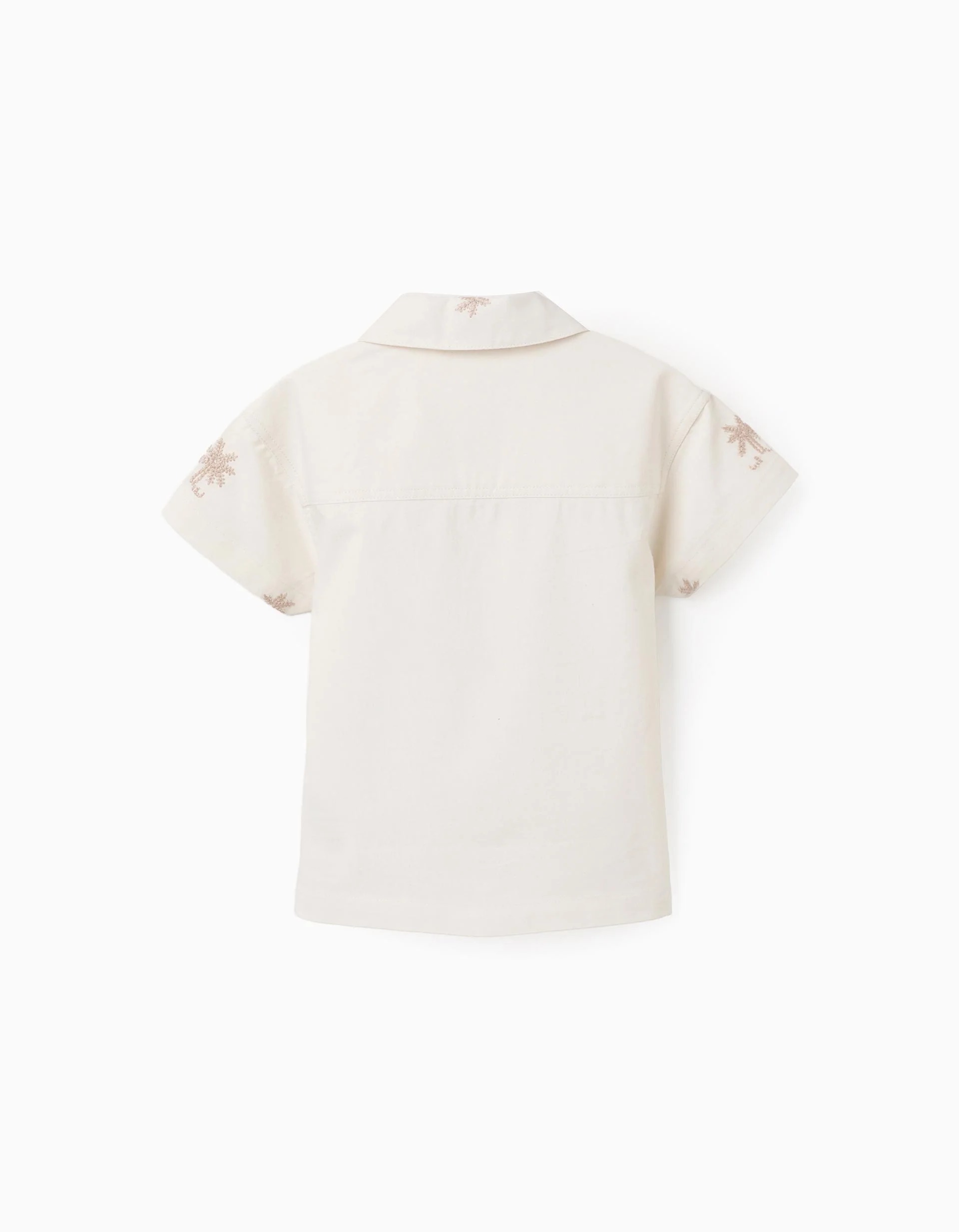 Chemise en coton avec palmiers brodés pour bébé garçon, beige clair