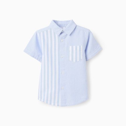 Chemise en coton Oxford pour bébé garçon, bleue