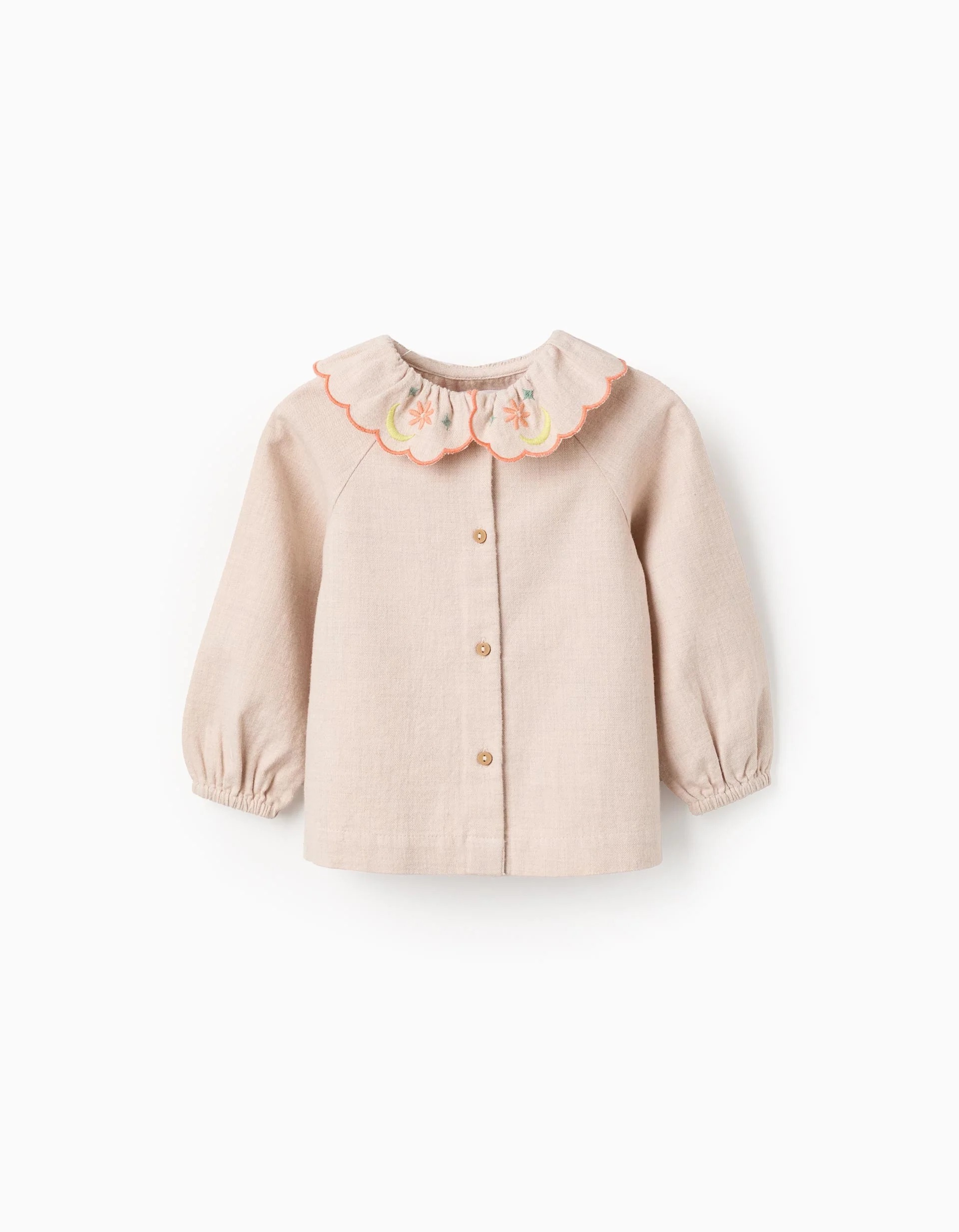 Chemise en Sergé Brodée de Fleurs pour Bébé Fille, Beige