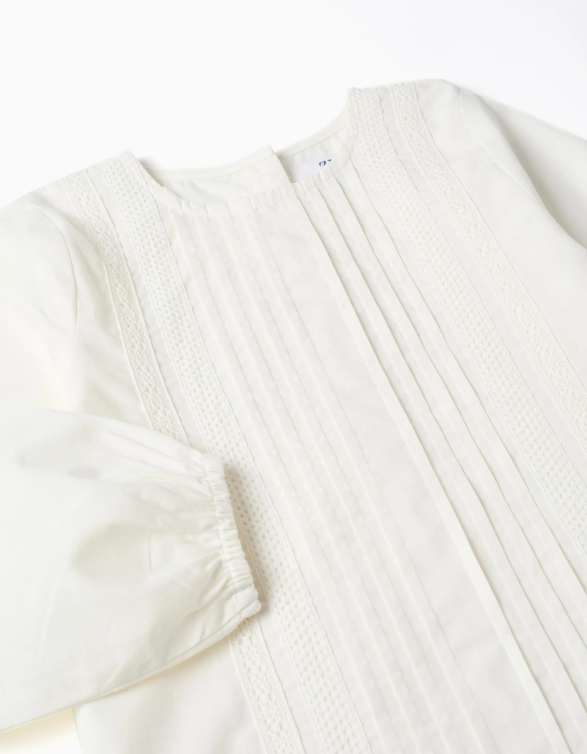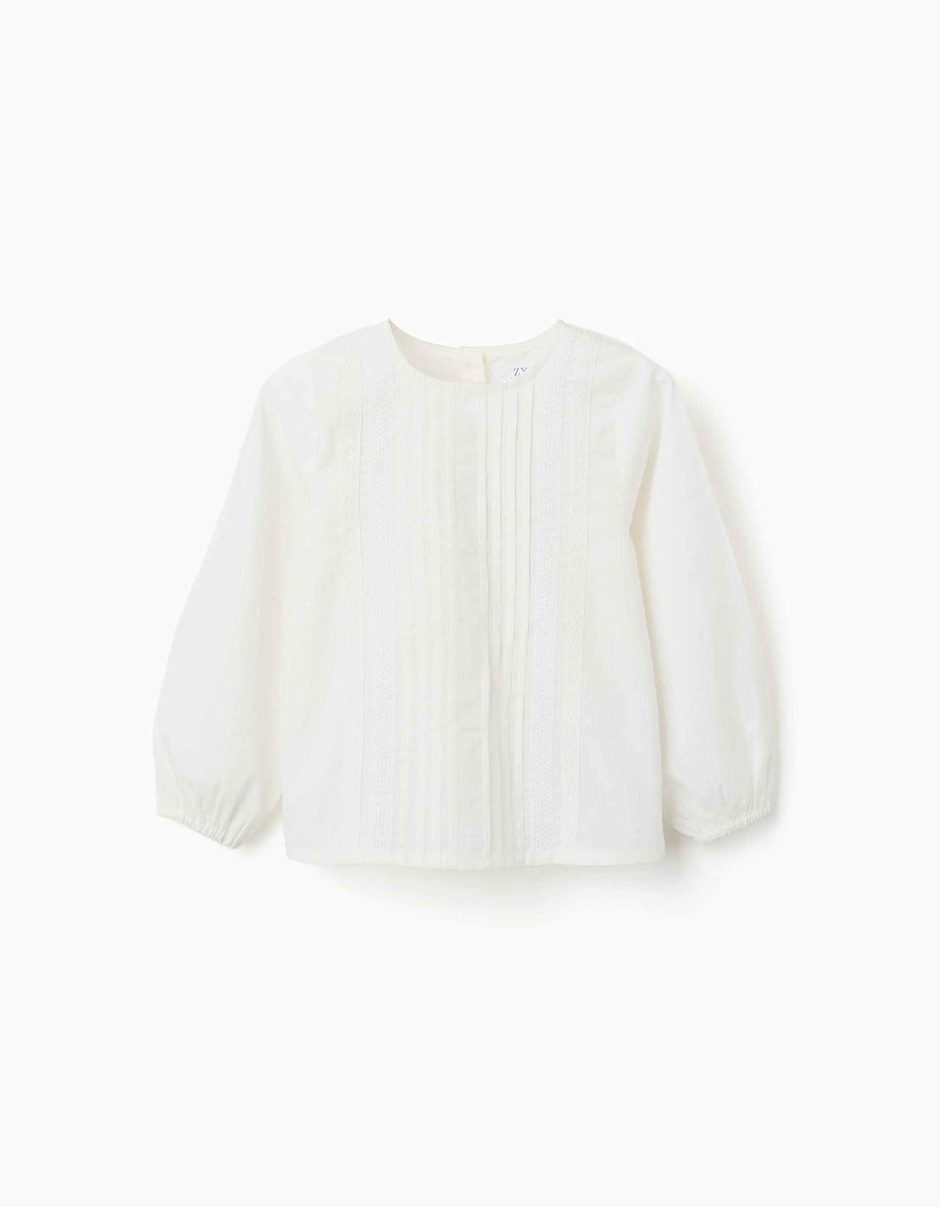 Chemisier en popeline à manches longues et plis sur le devant pour filles, blanc