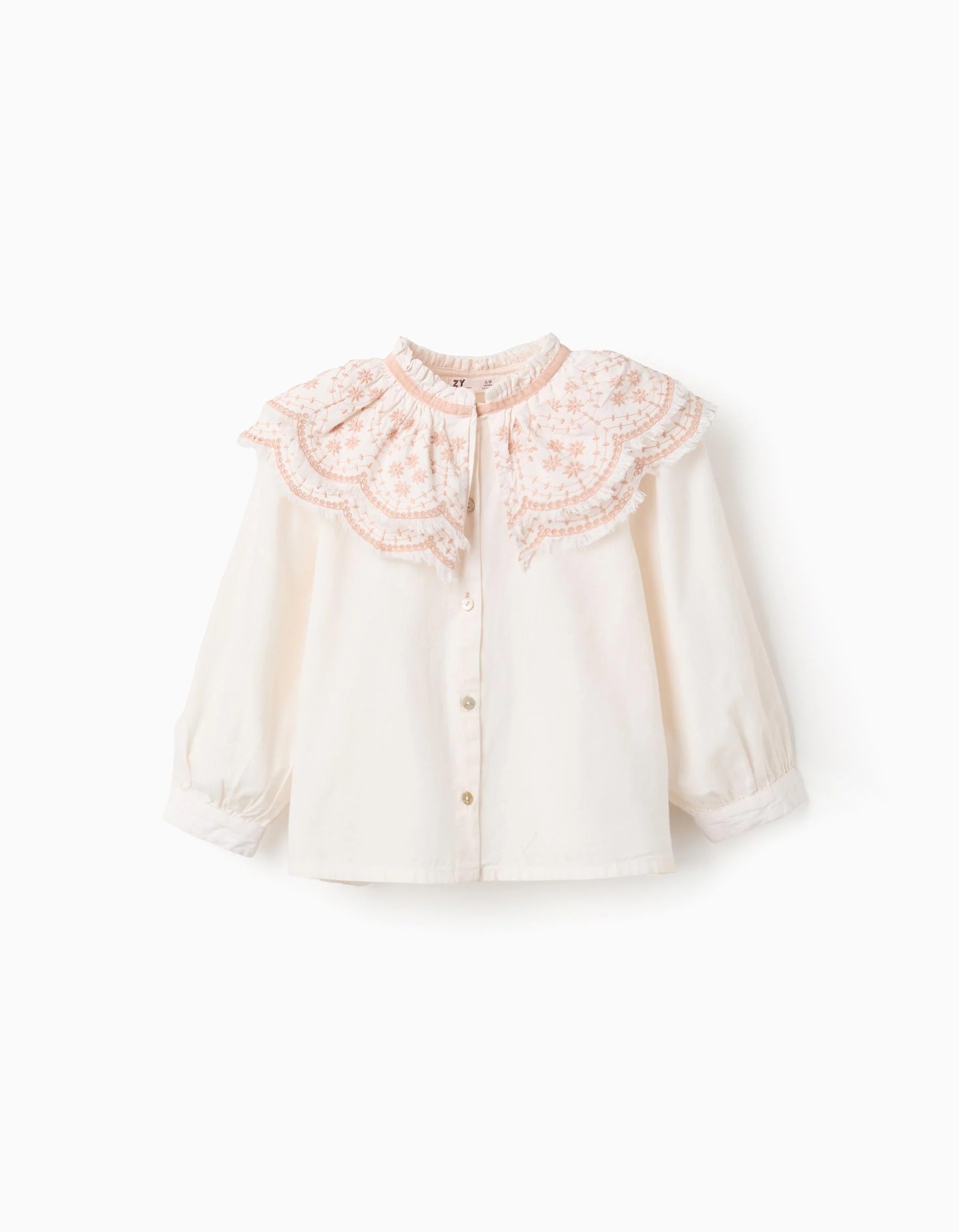 Chemisier en popeline avec détails brodés pour filles, blanc/rose