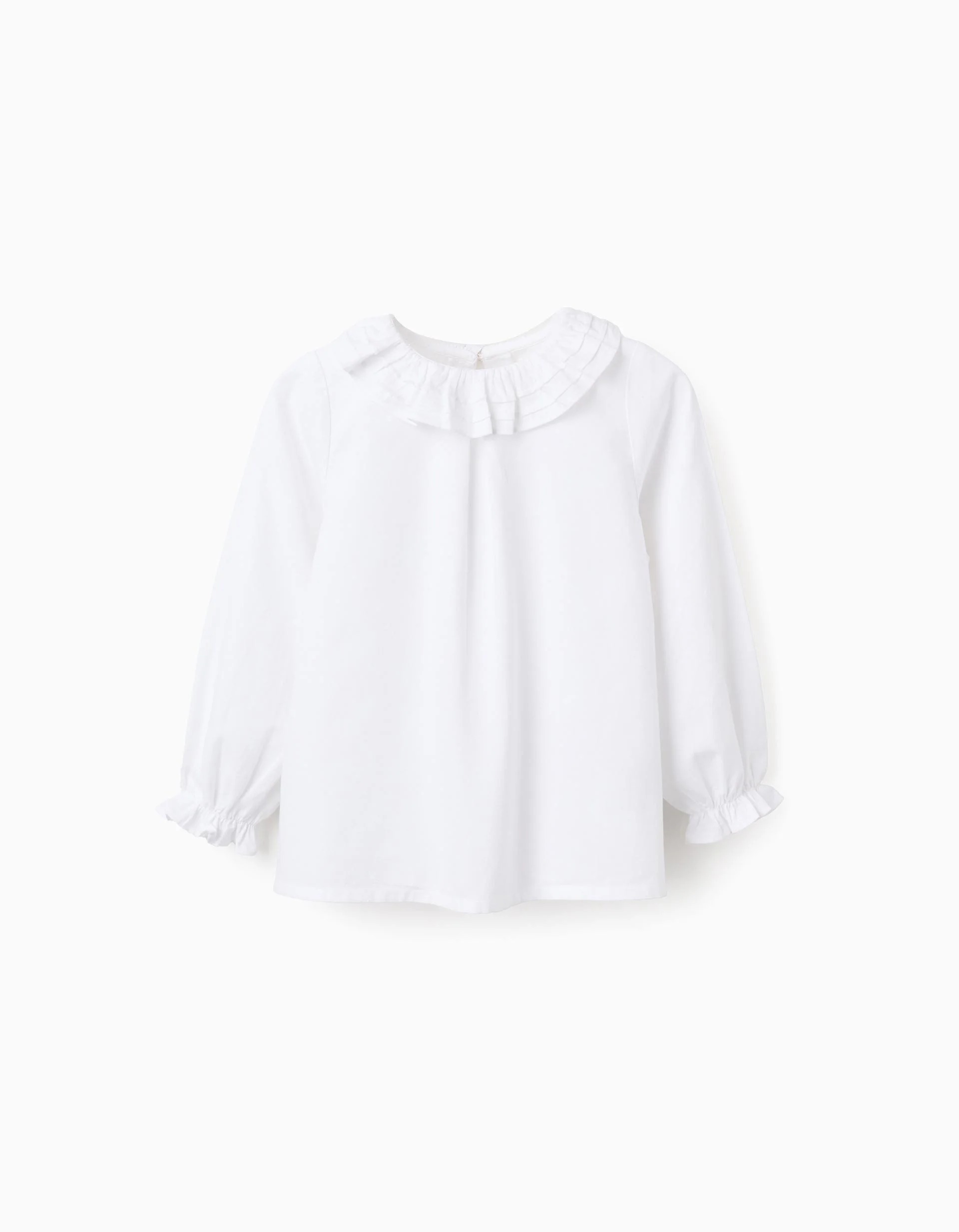 Chemisier en sergé de coton à volants pour filles, blanc