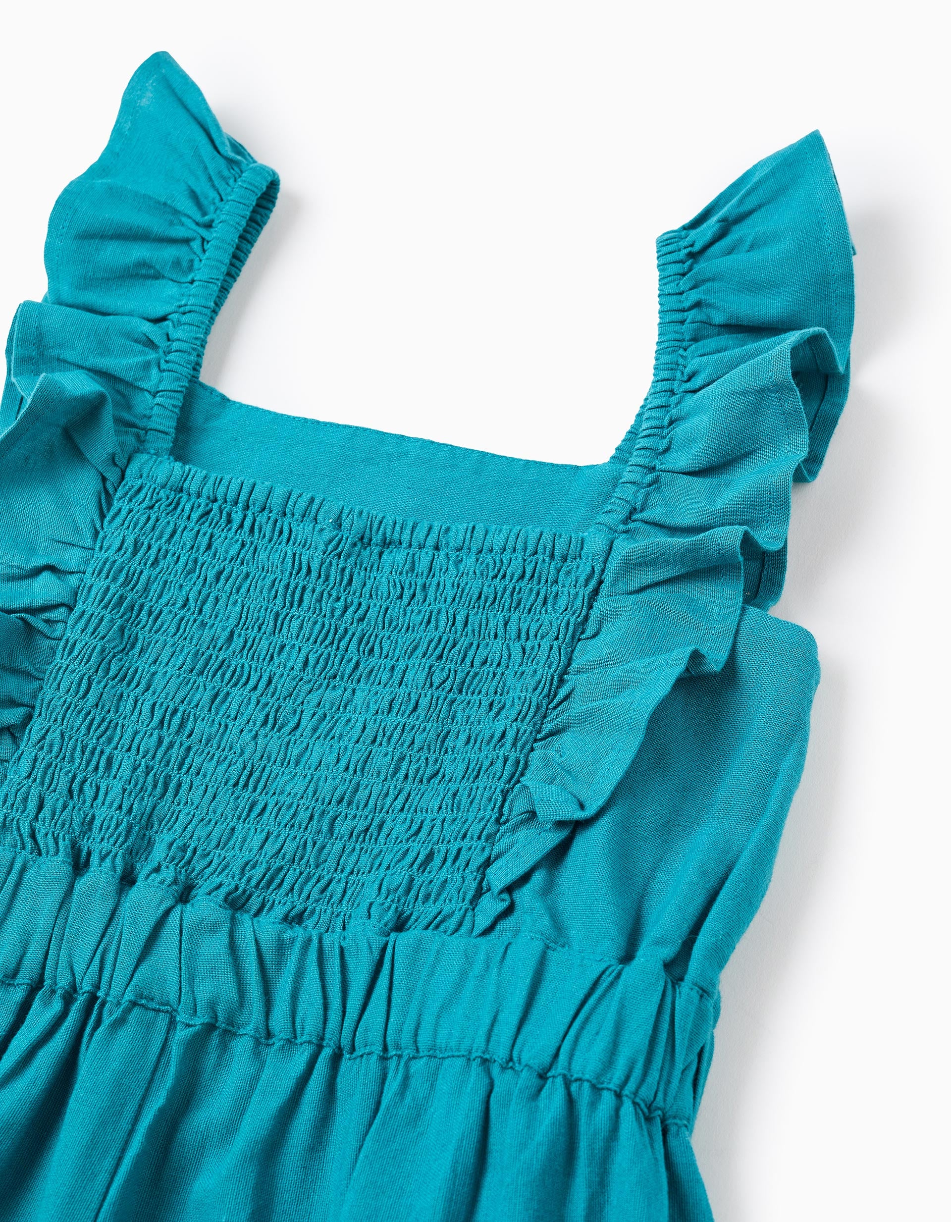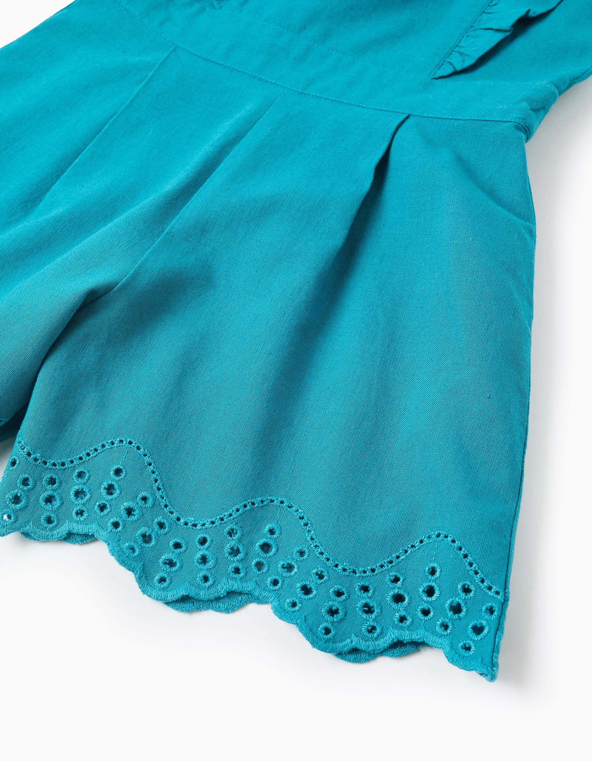 Combinaison en coton et lin avec broderie anglaise pour fille « B&S », turquoise