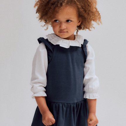 Combinaison en jean à bretelles volantées pour bébé fille, bleu foncé
