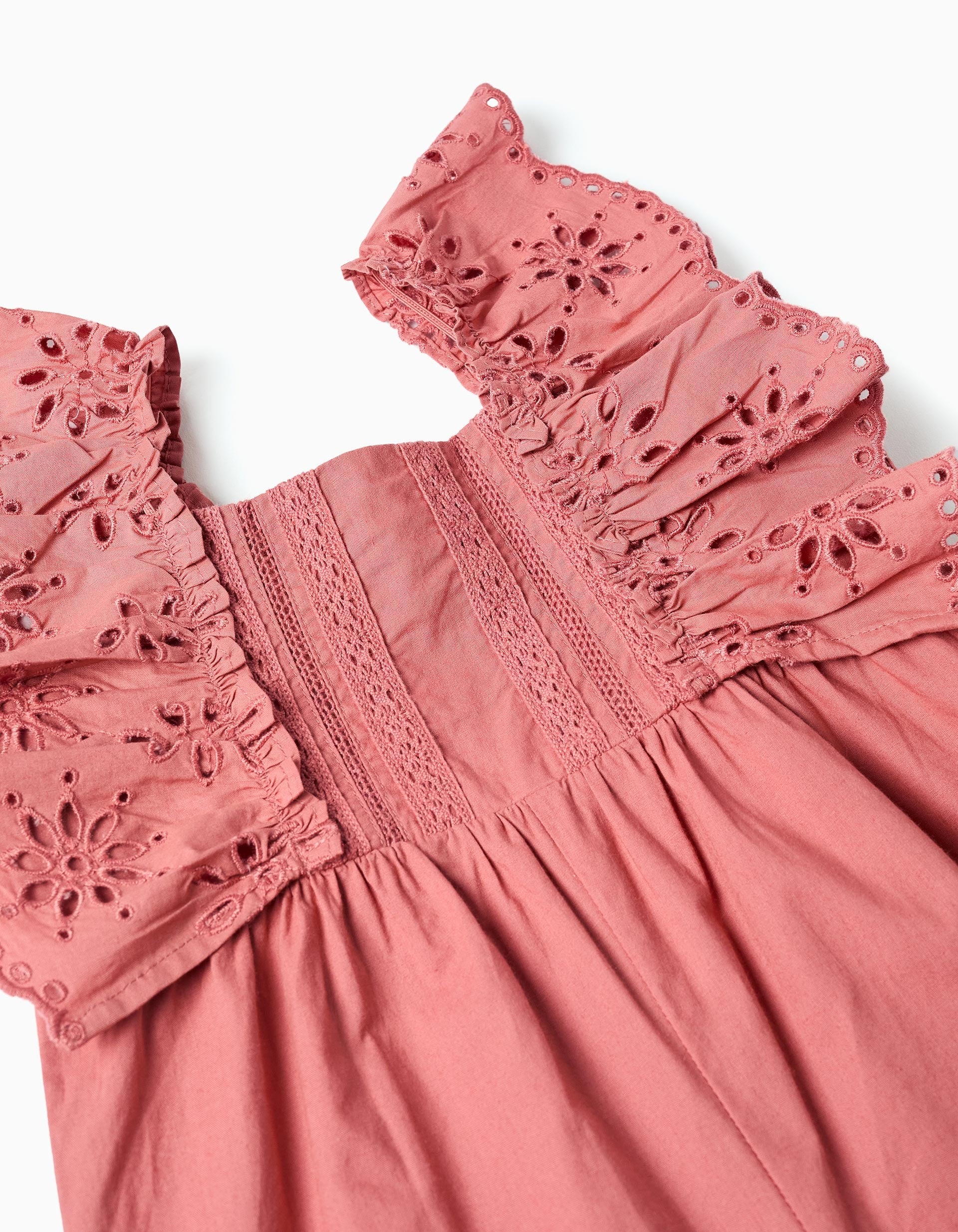 Combinaison en popeline à volants et broderie anglaise pour bébé fille, rose