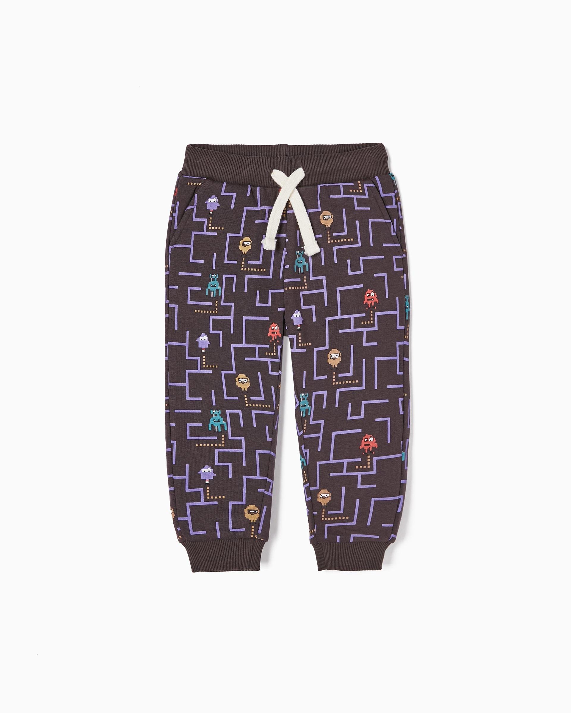 Cotton Joggers for Baby Boys ‘Labyrinth’, Dark Grey/Purple