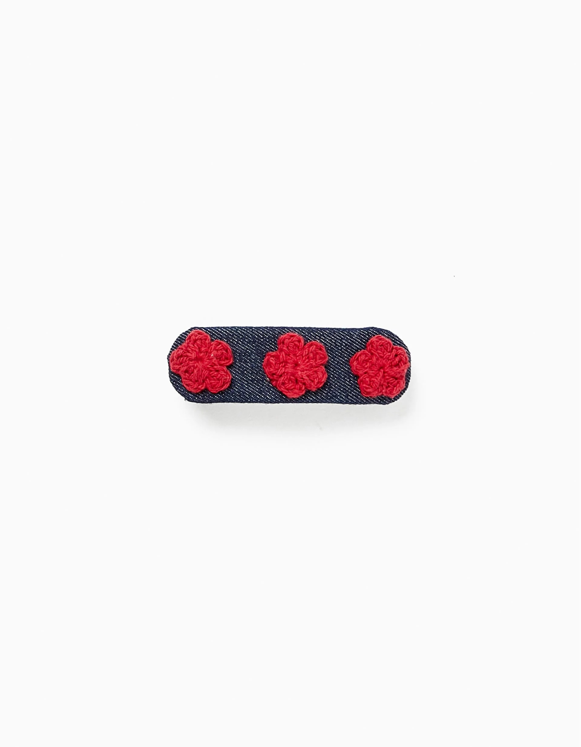 Hair Clip with Crochet Flowers for Babies and Girls, Blue/Red