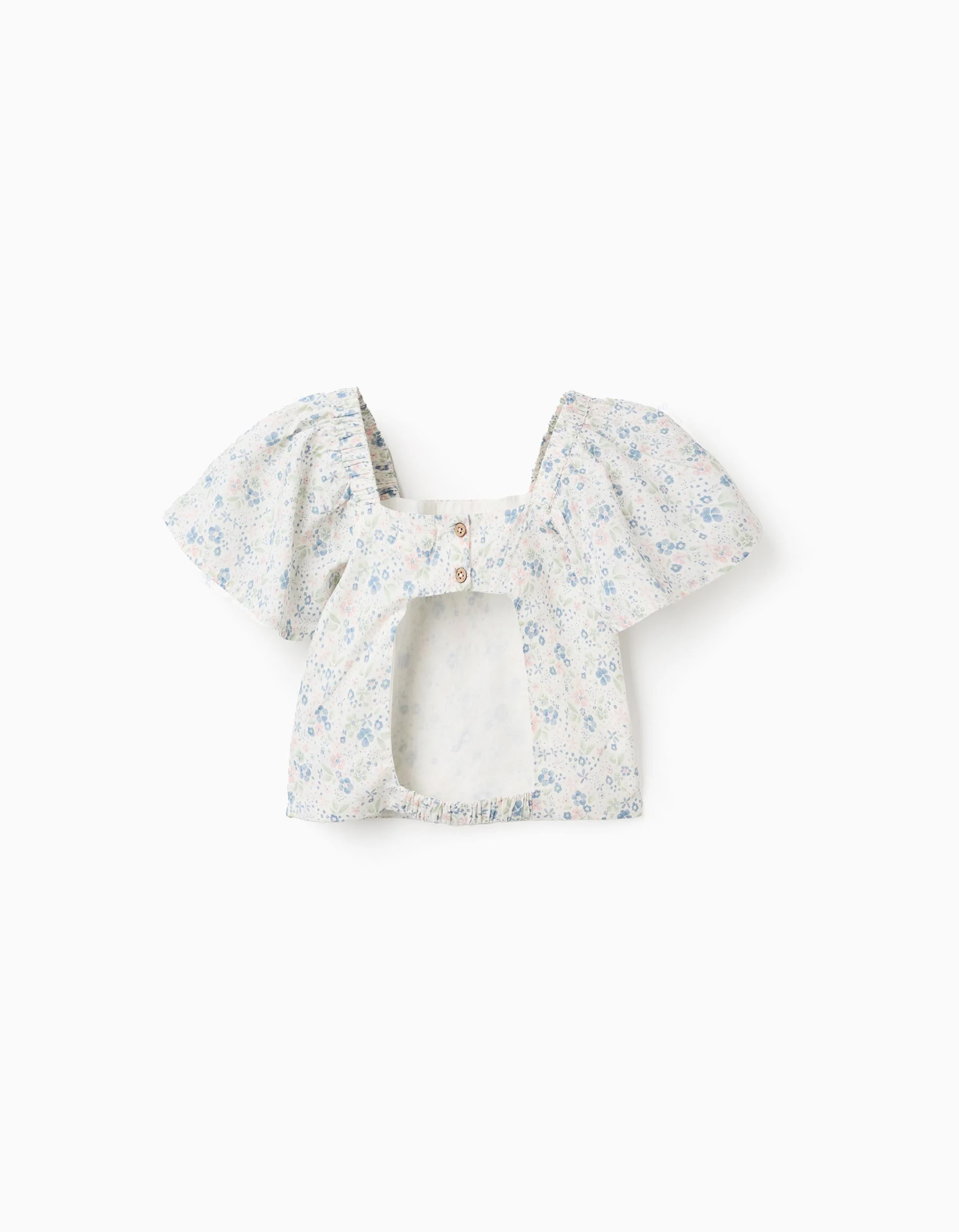 Haut fleuri à manches papillon et dos ouvert pour fille, blanc