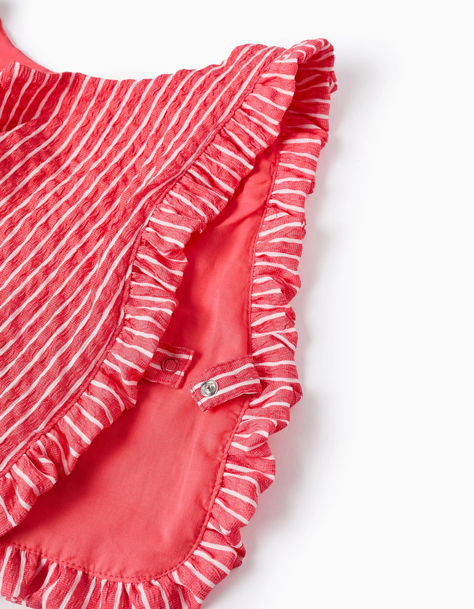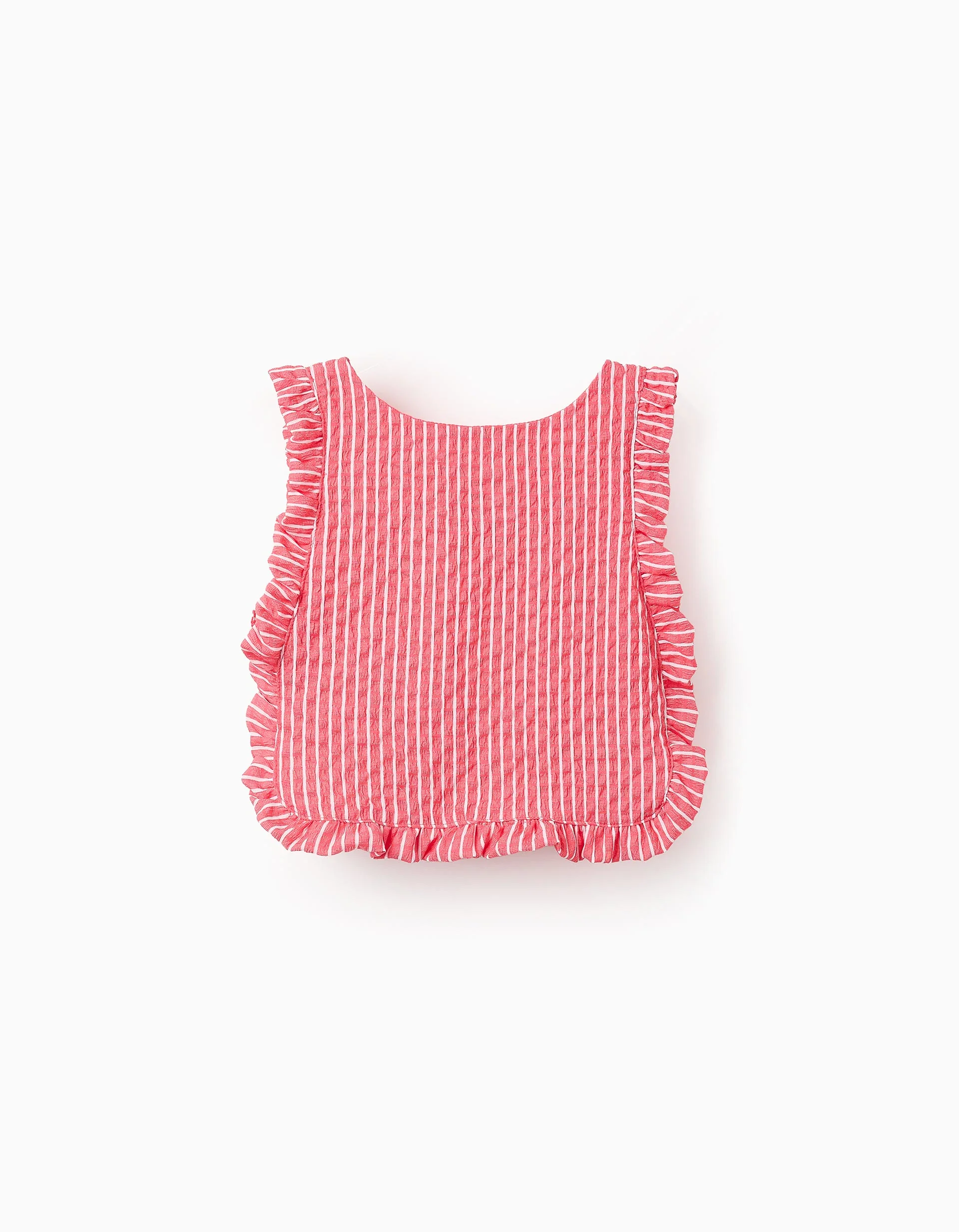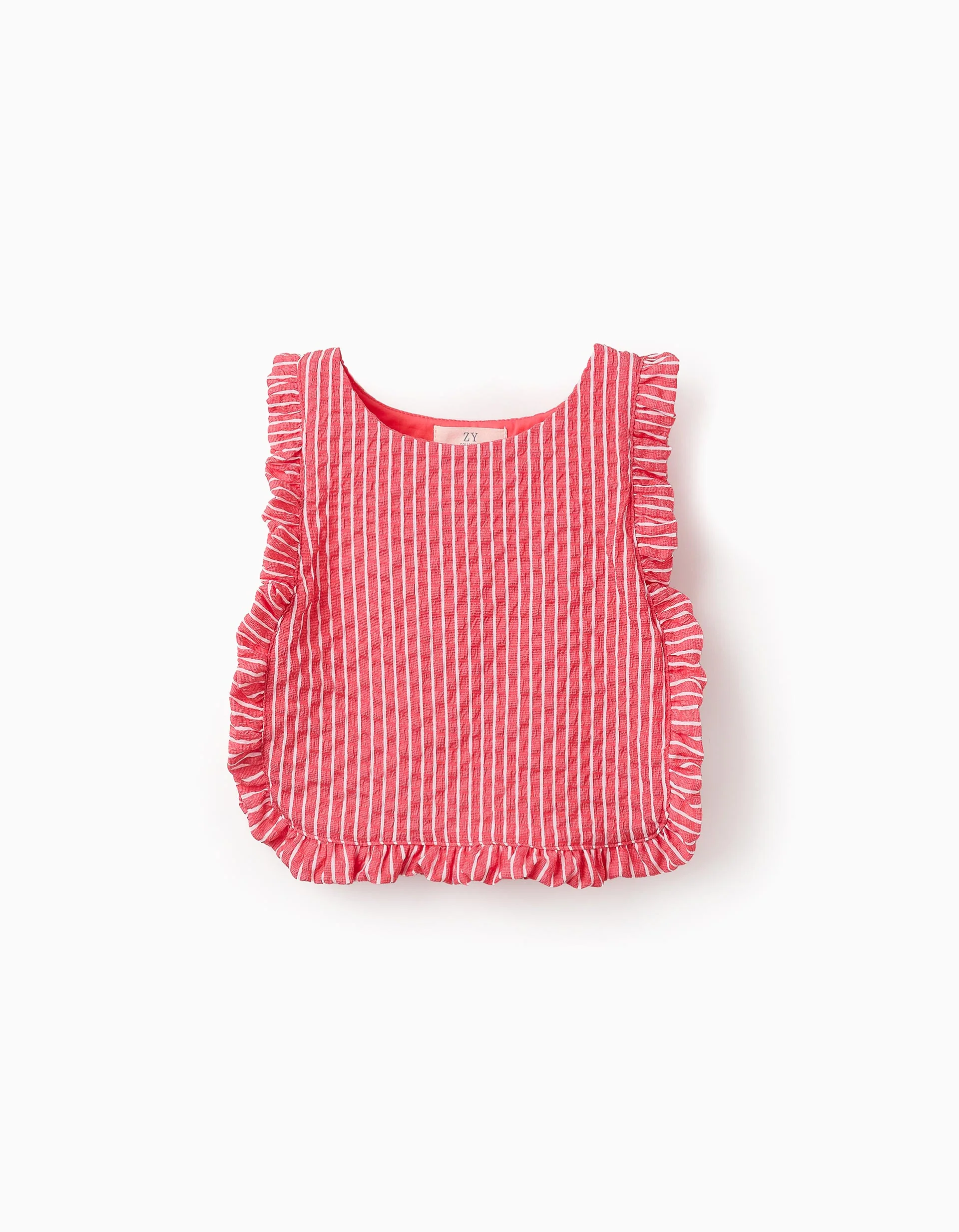 Hauts texturés rayés à volants pour filles, rouge/blanc