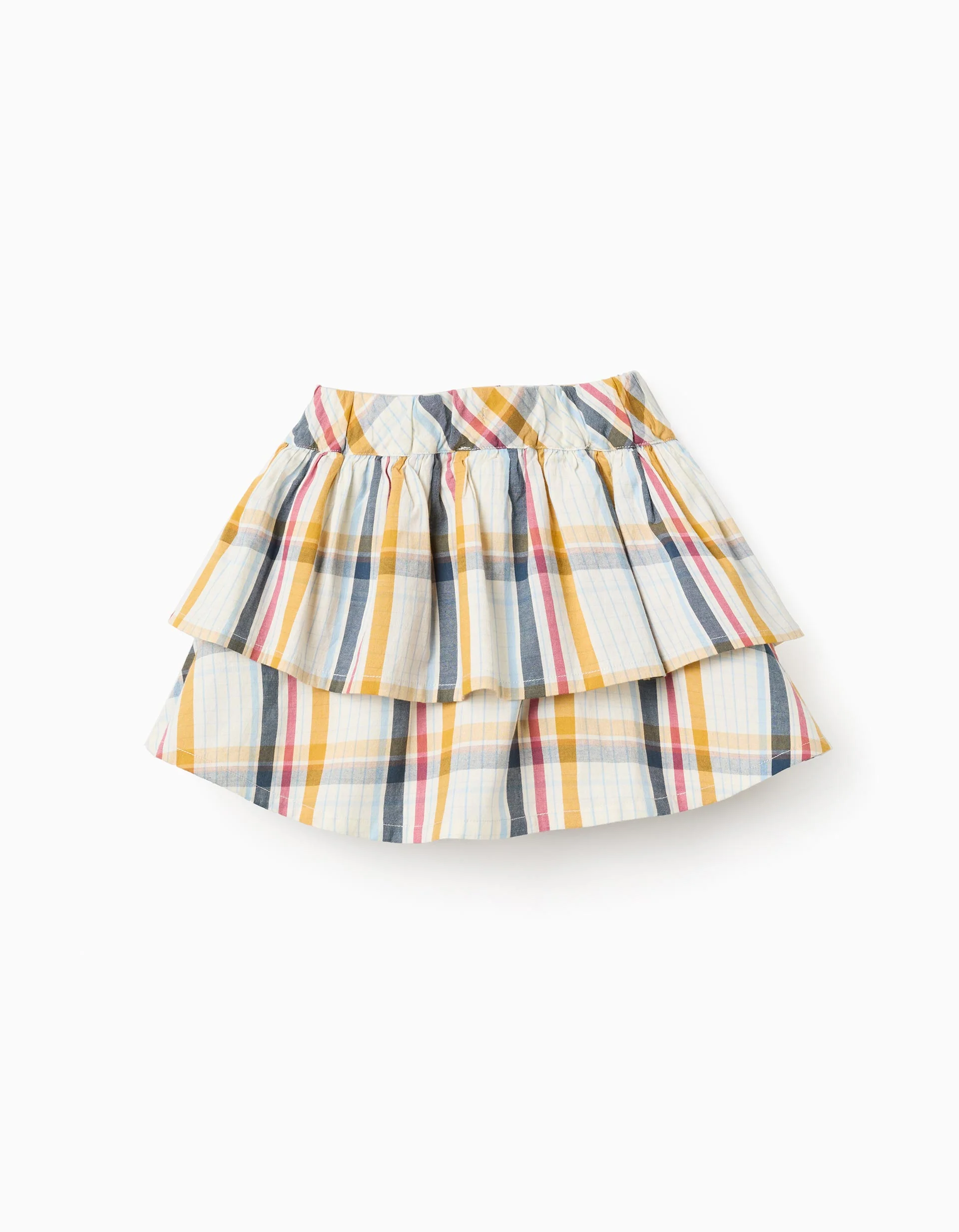 Jupe à carreaux et volants en coton pour fille « B&S », multicolore