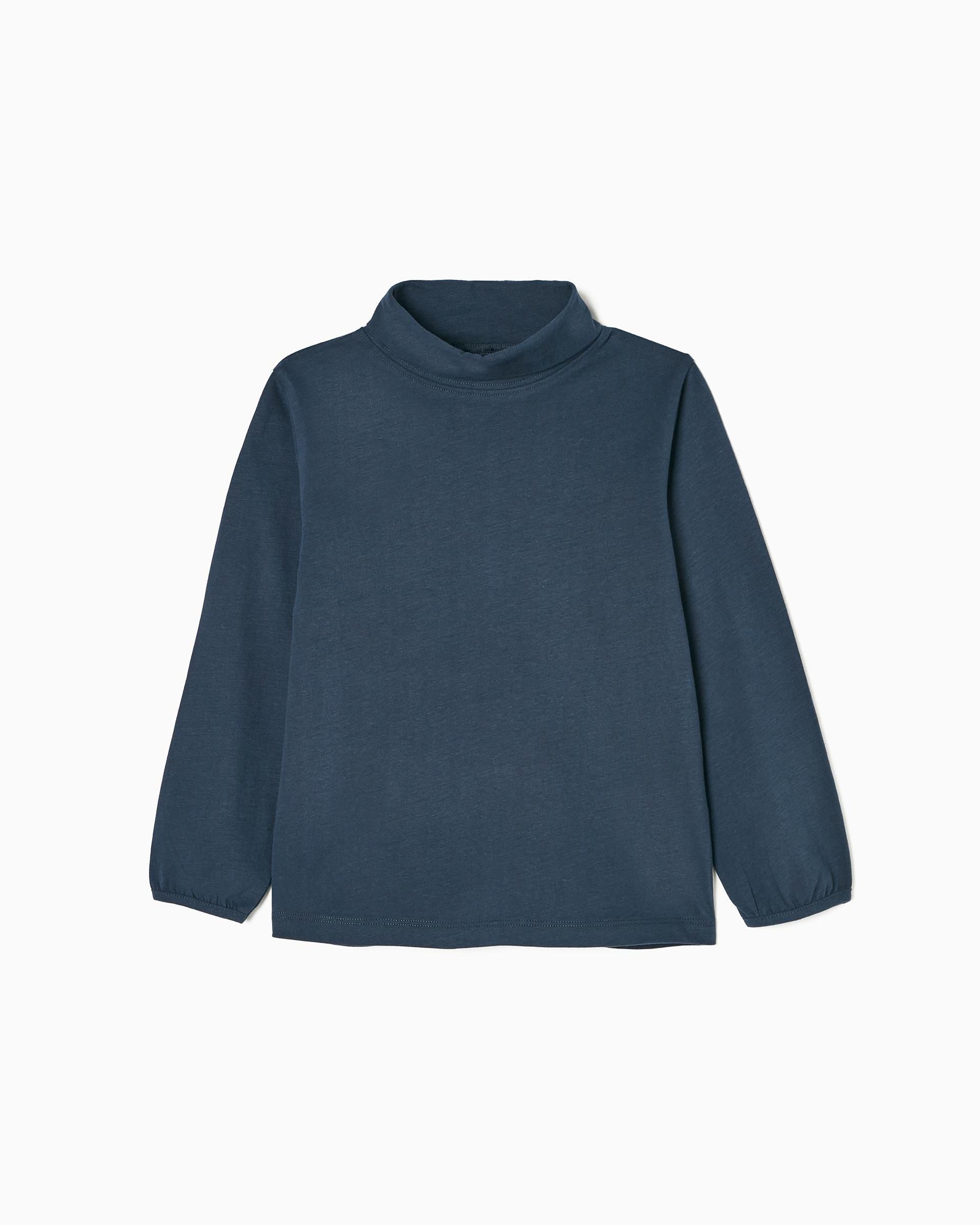 Long Sleeve Turtleneck Cotton T-shirt for Girls, Dark Blue