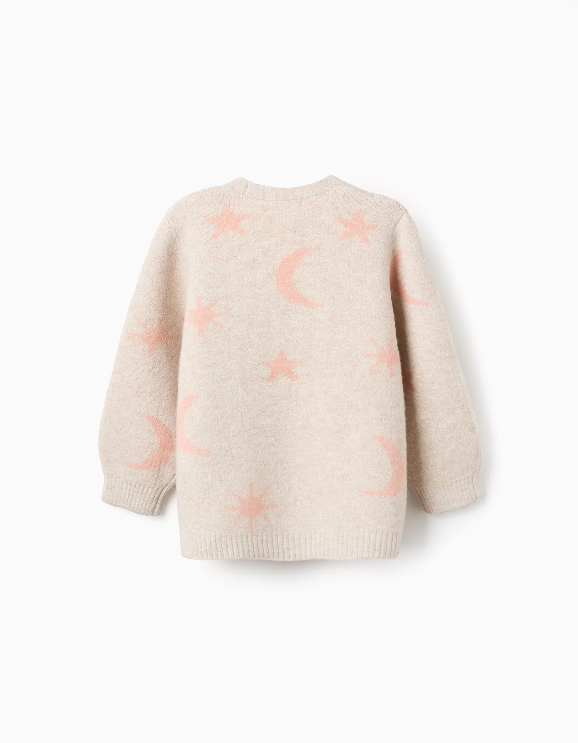 Longue veste tricotée avec lurex et broderie pour filles, beige/rose
