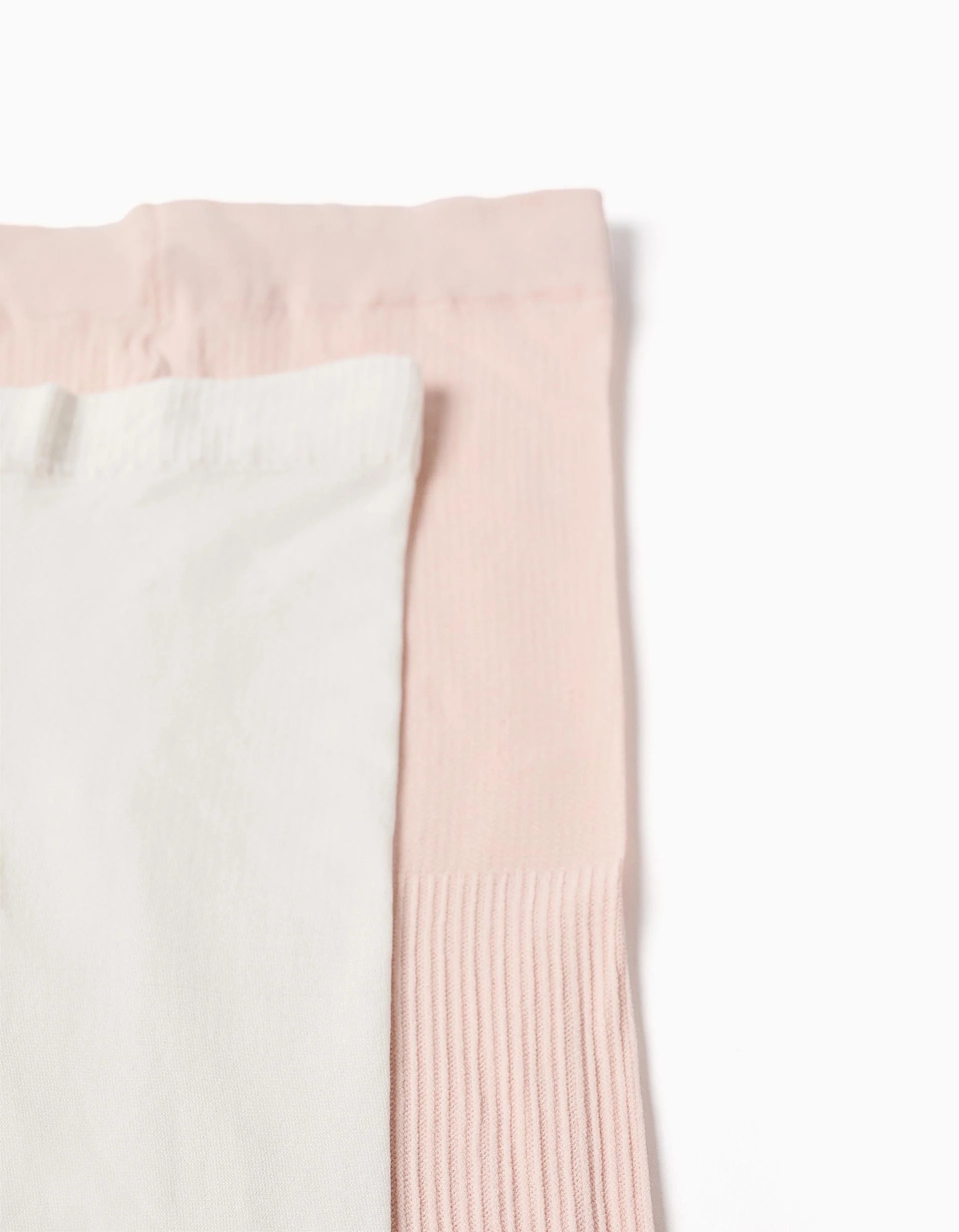 Lot de 2 collants en microfibre pour bébé fille, blanc/rose clair