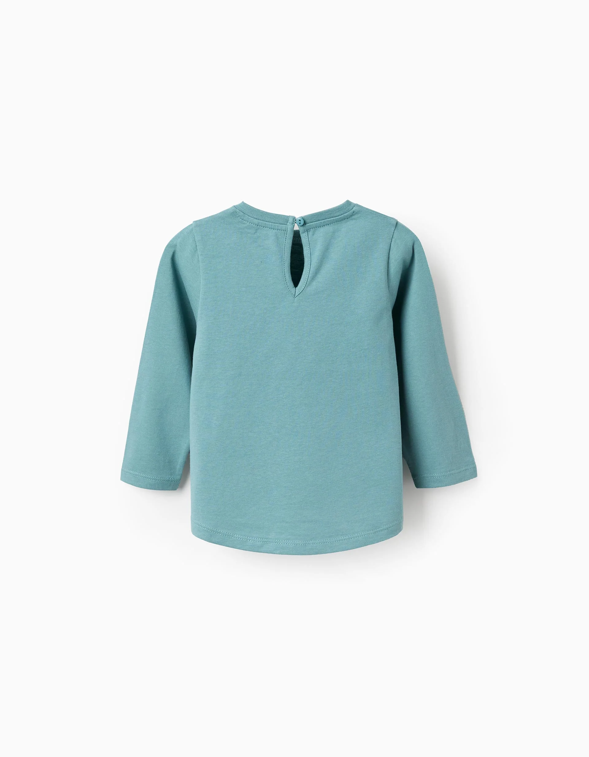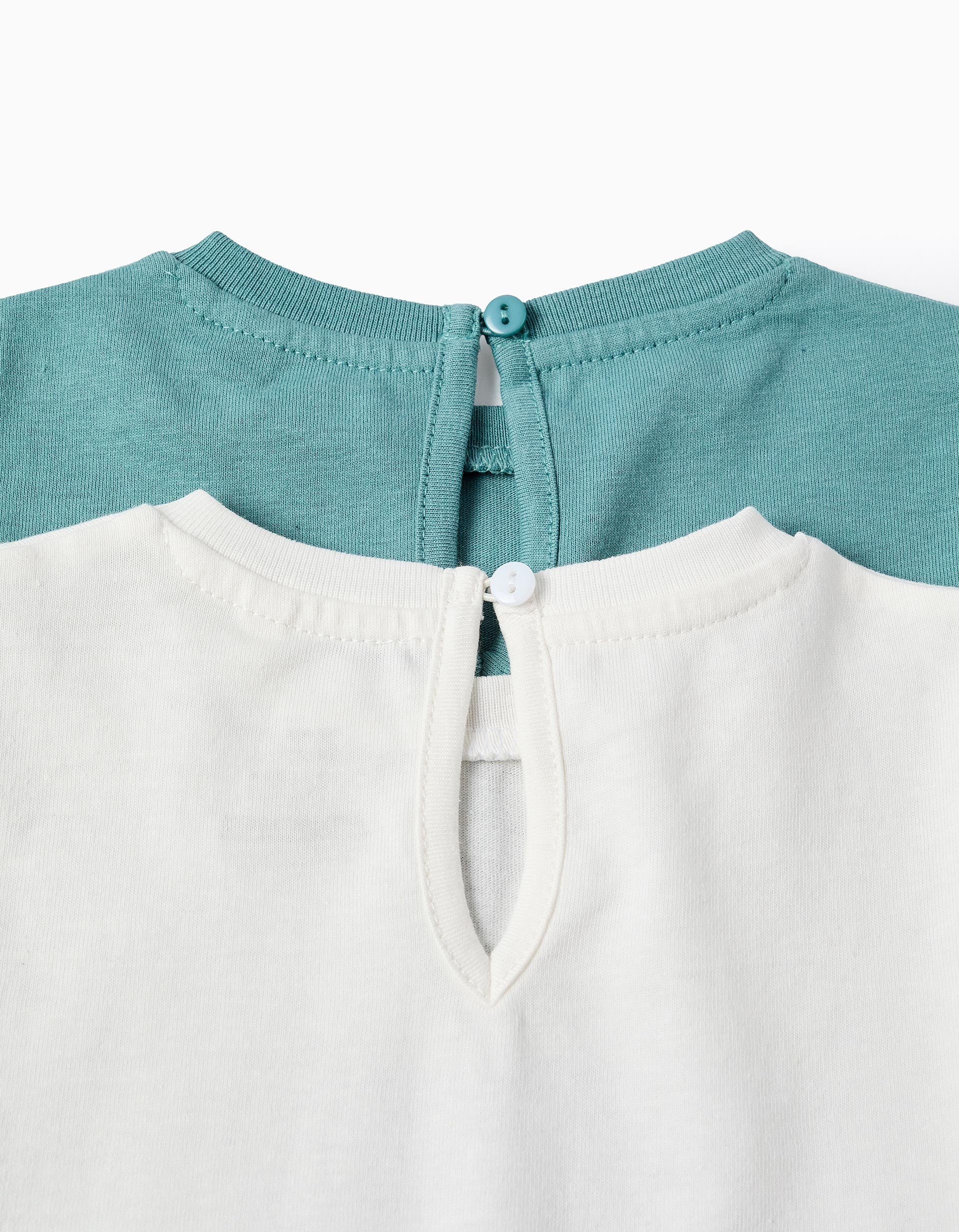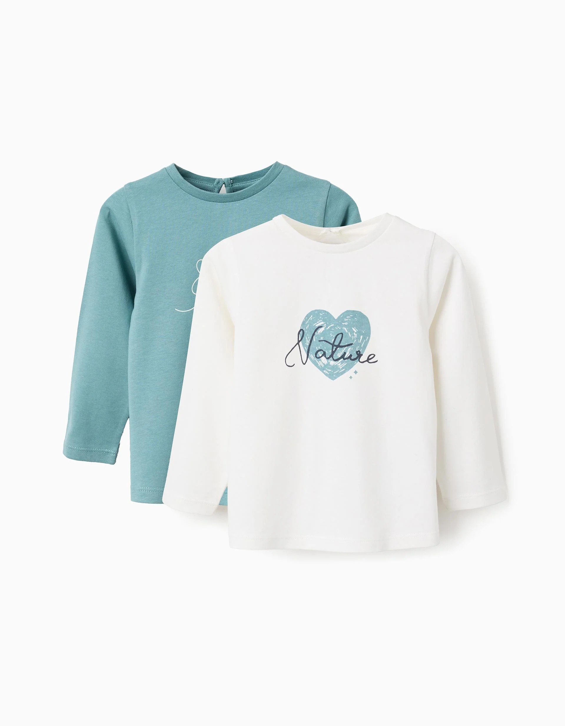 Lot de 2 t-shirts à manches longues pour bébé fille, blanc/turquoise