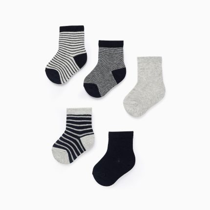 Lot de 5 paires de chaussettes pour bébé garçon « Stripes », bleu foncé/gris