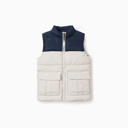 Manteau effet laine avec fermeture éclair et poches à rabat ‘B&S’pour garçons, beige