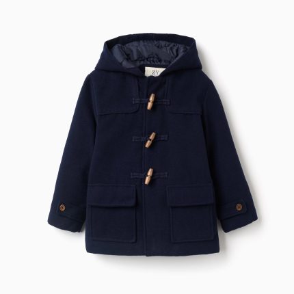 Manteau effet laine avec ouverture en croix pour garçons, bleu foncé