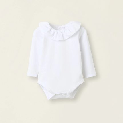 Body en coton avec col à volants pour nouveau-né fille, blanc