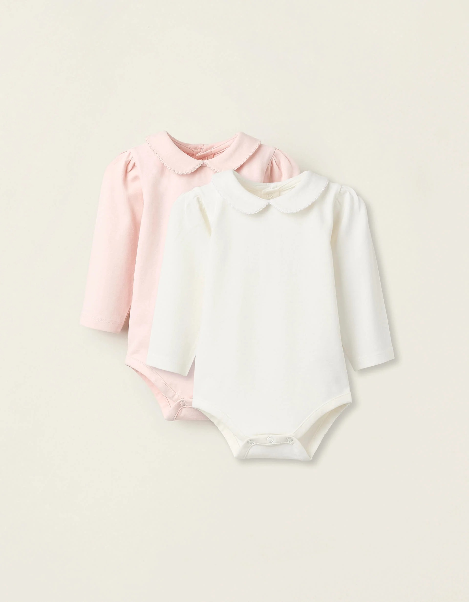 Pack of 2 Bodysuits in Cotton for Newborn Girls, White/Pink
