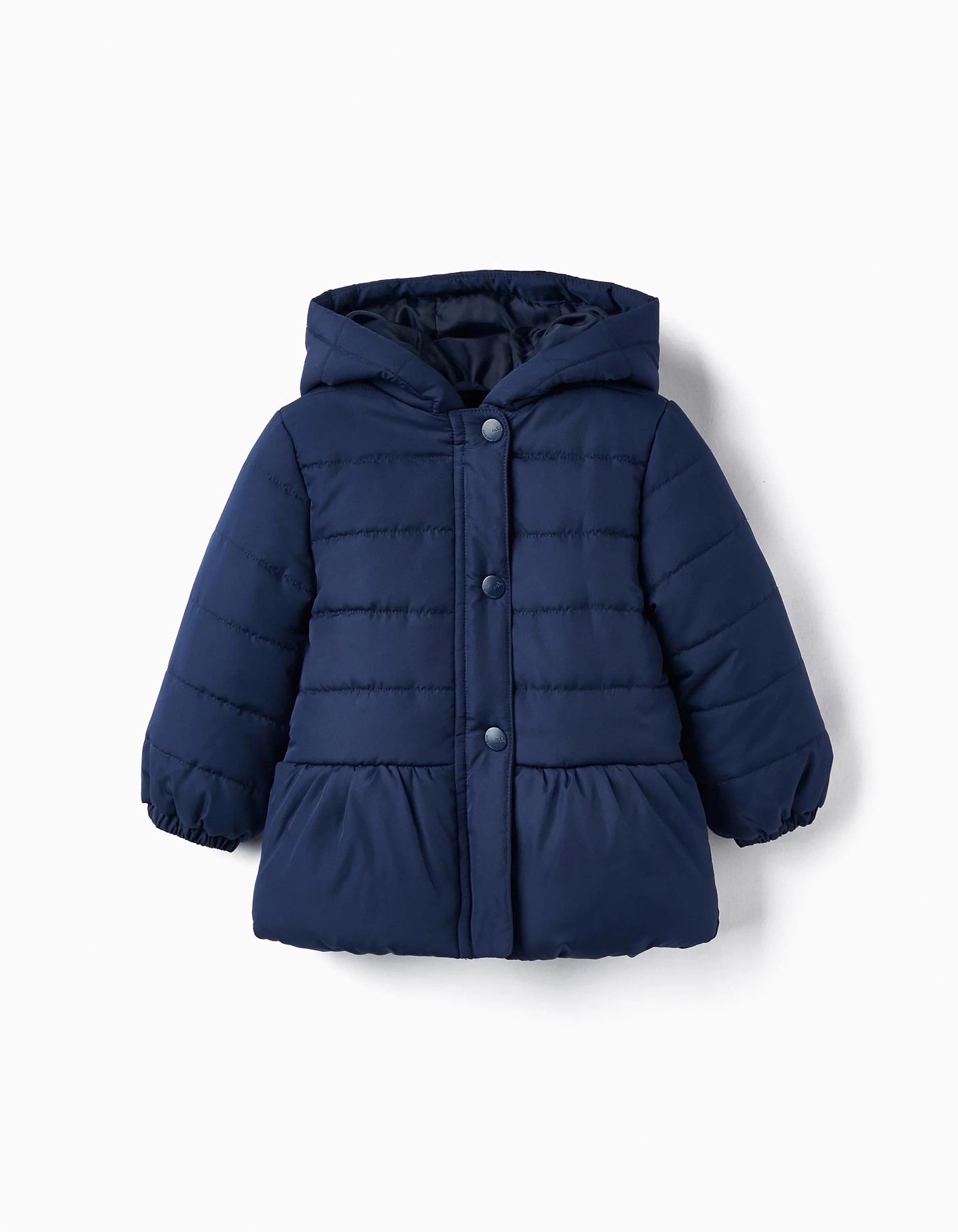 PADDED PEPLUM HOODED COAT FOR BABY GIRLS, DARK BLUE