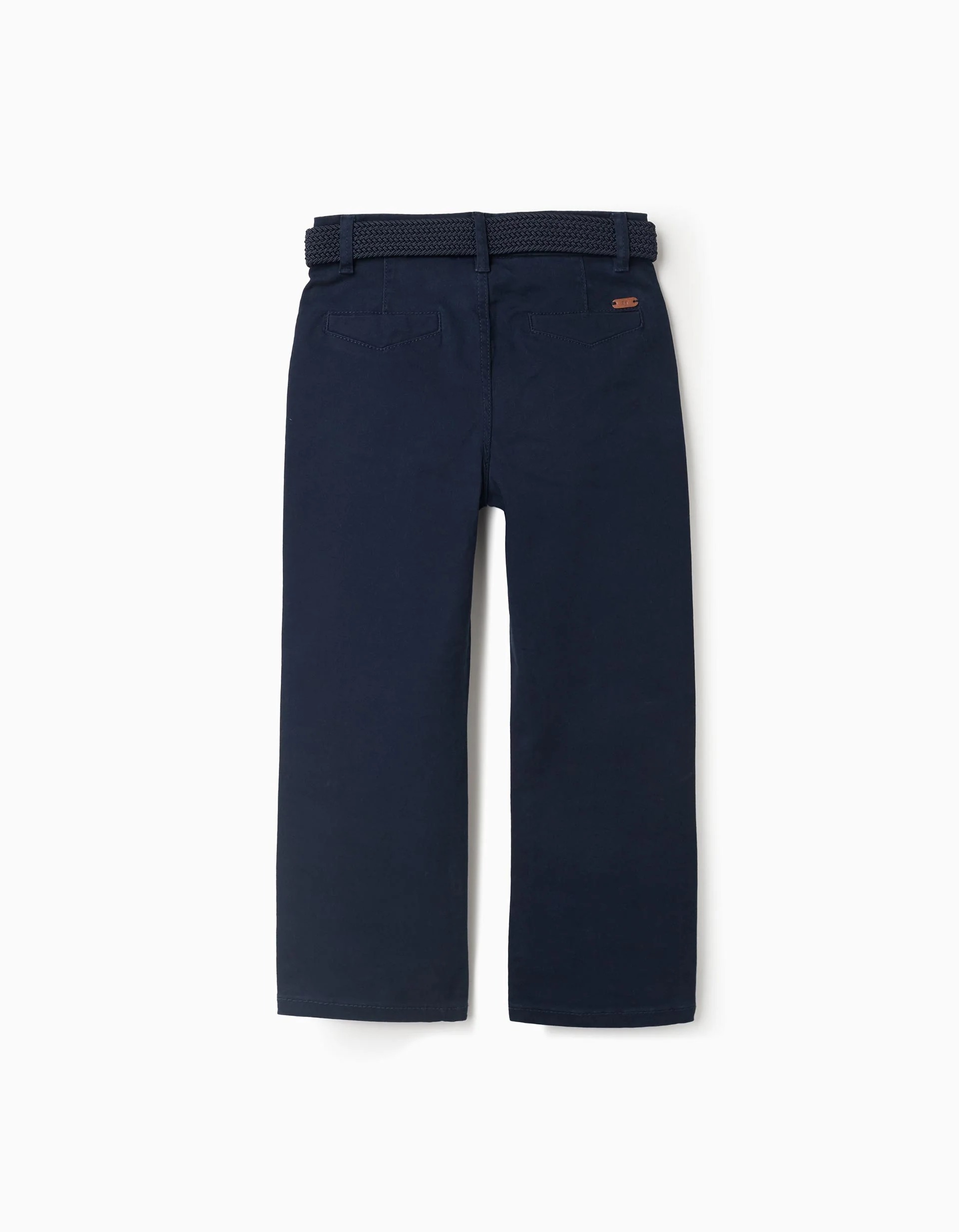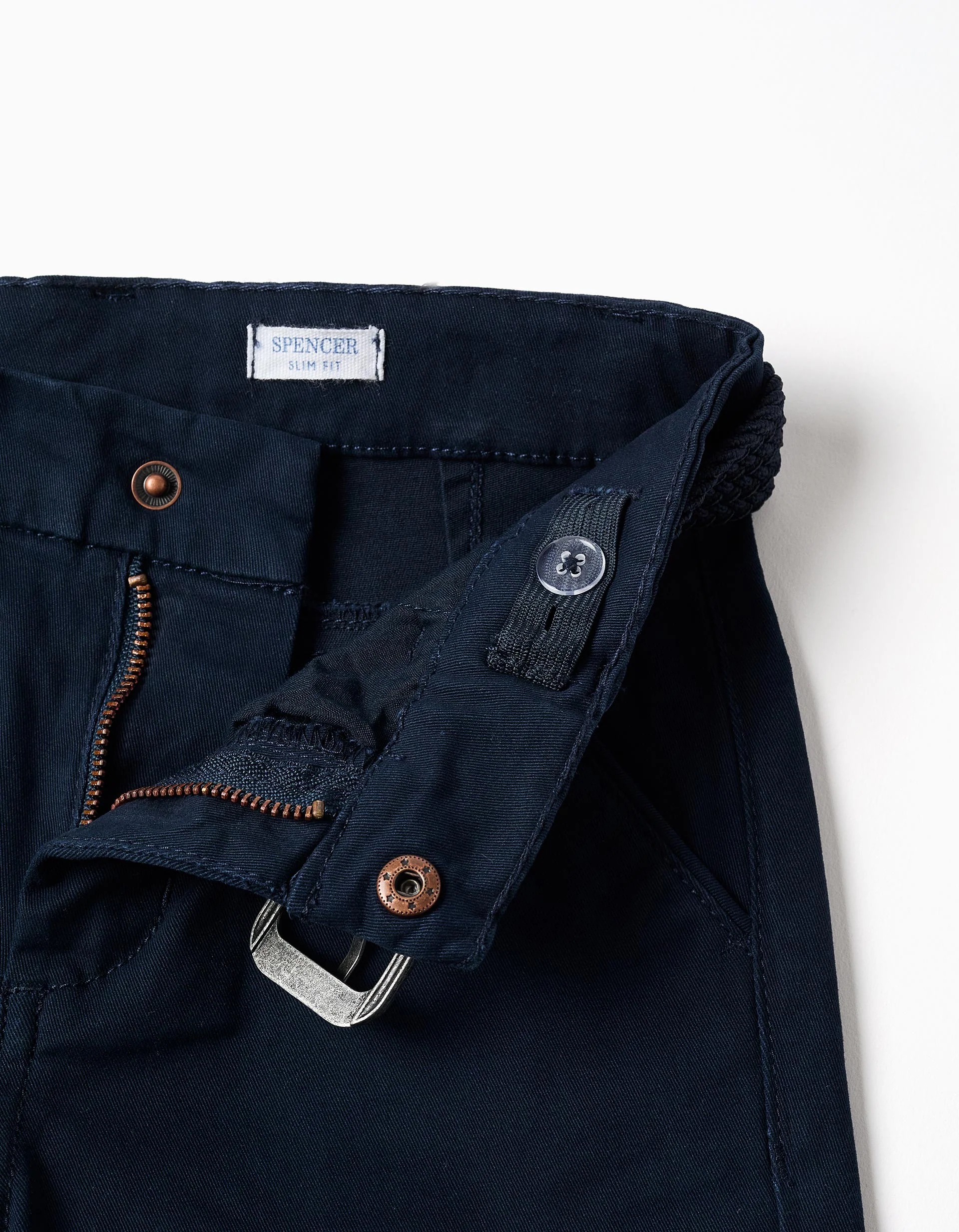 Pantalon chino ajusté en sergé avec ceinture pour garçon, bleu foncé