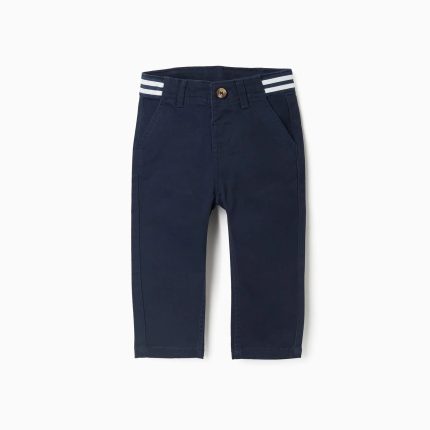 Pantalon en sergé bleu foncé avec taille élastiquée et cordon de serrage pour bébé garçon