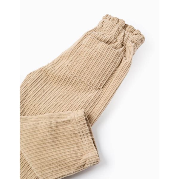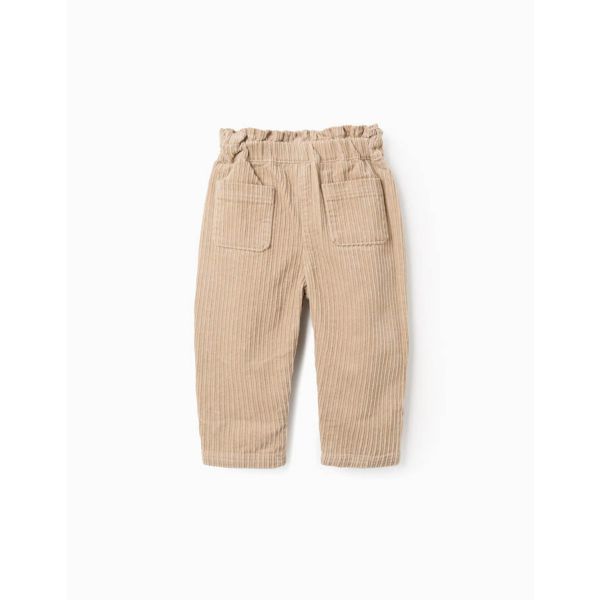 Pantalon en velours côtelé à taille haute pour bébé fille, beige