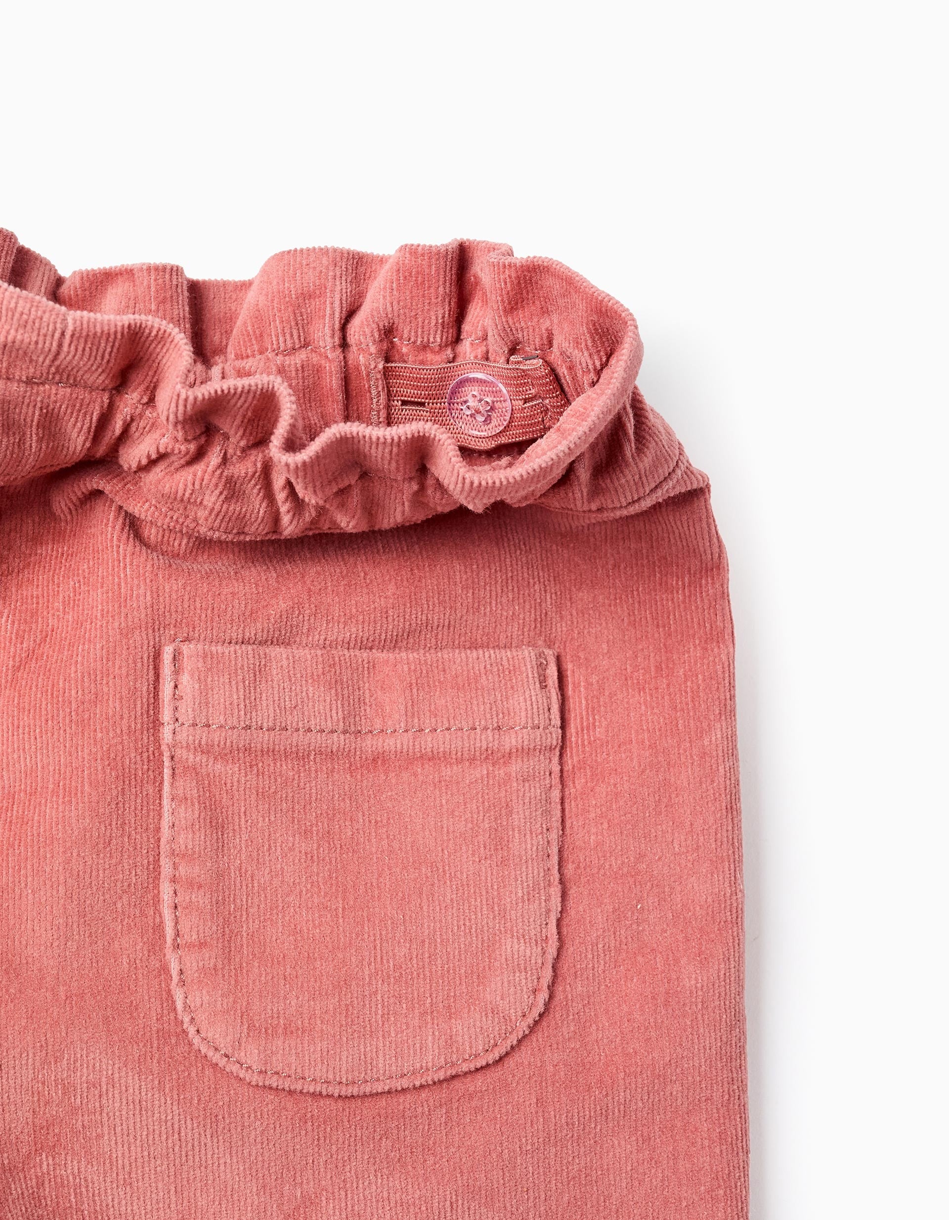 Pantalon en velours côtelé avec taille en sac en papier pour les filles, rose