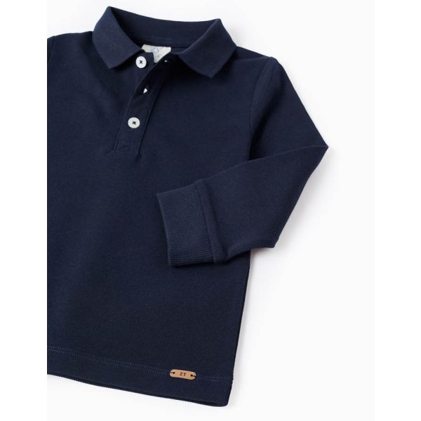 Polo en coton à manches longues pour bébé garçon, bleu foncé