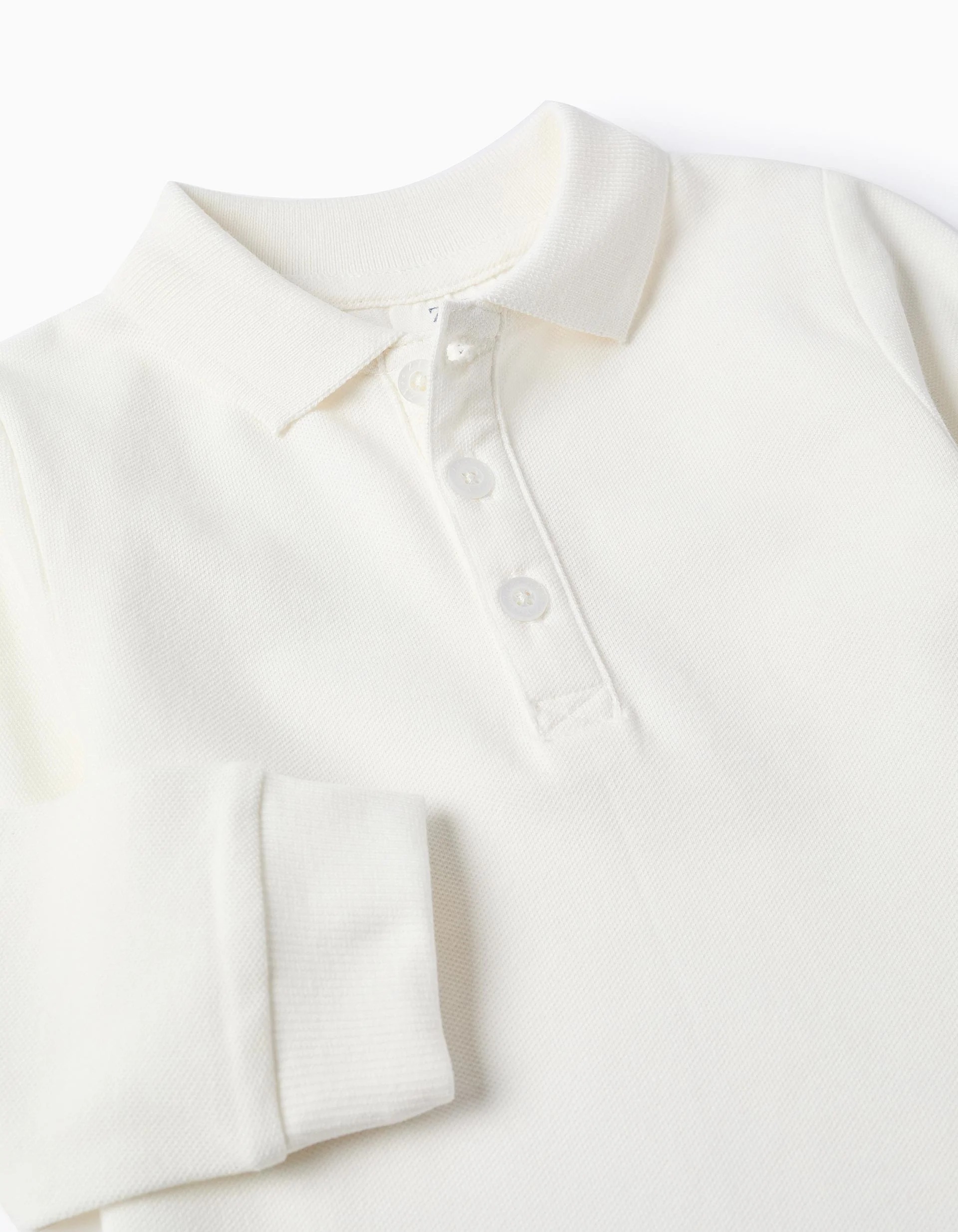 Polo en piqué de coton à manches longues pour bébé garçon, blanc