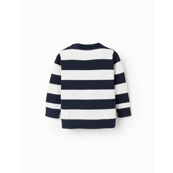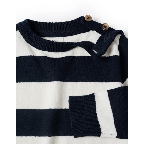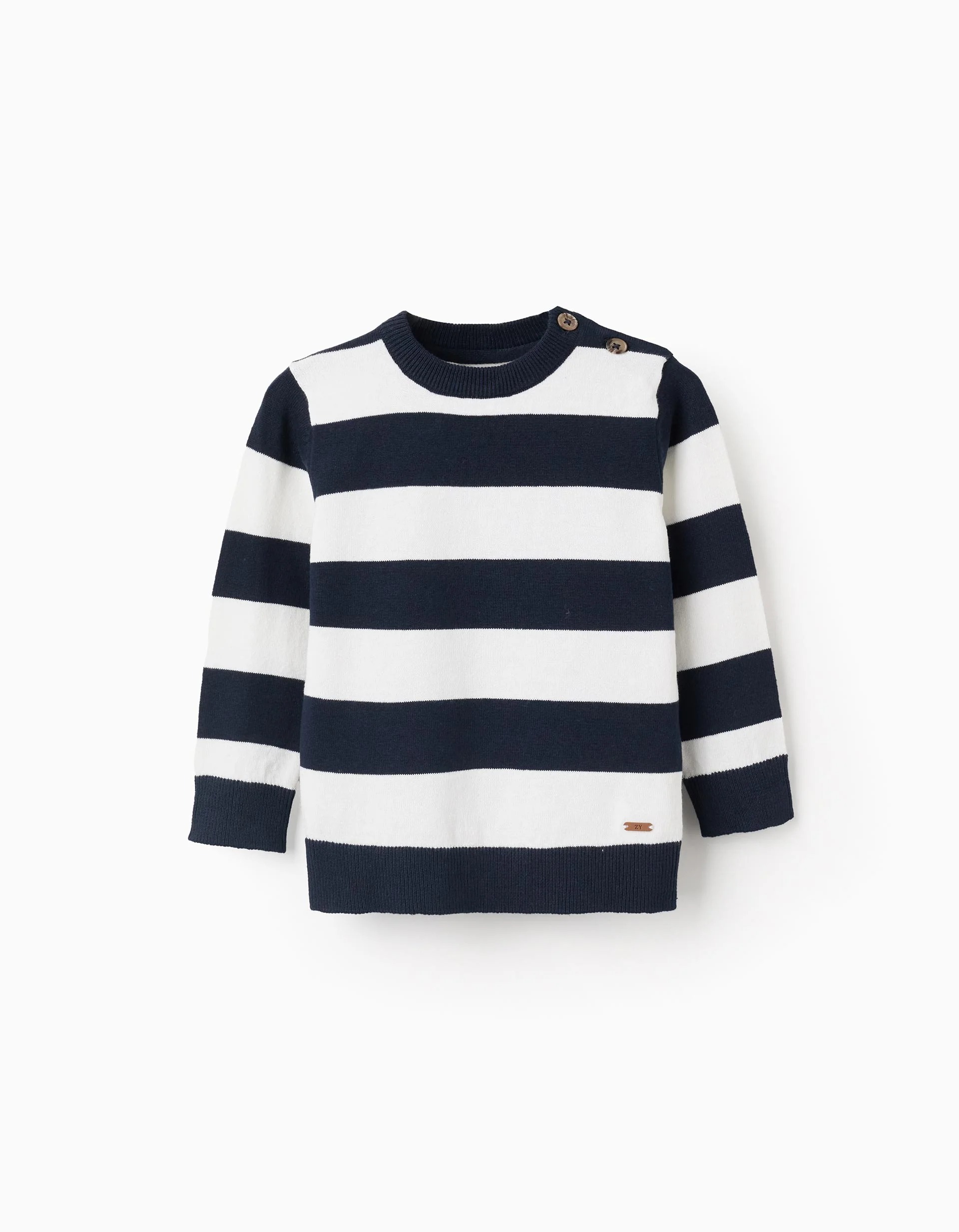 Pull rayé en maille fine pour bébé garçon, blanc/bleu foncé