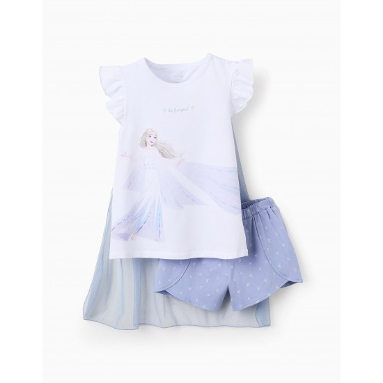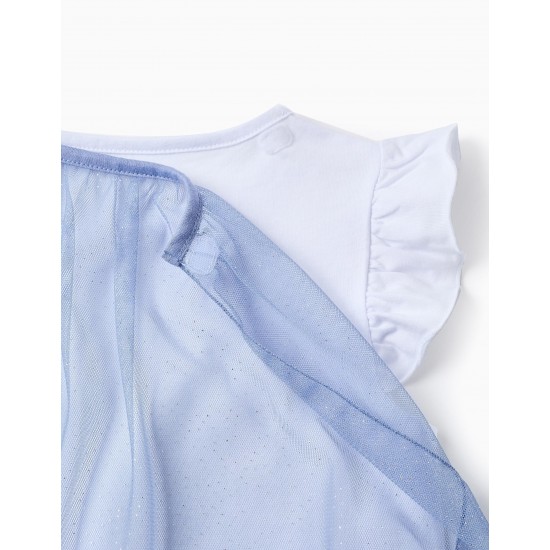 Pyjama en Coton avec Cape en Tulle Fille ‘Elsa’, Bleu/Blanc